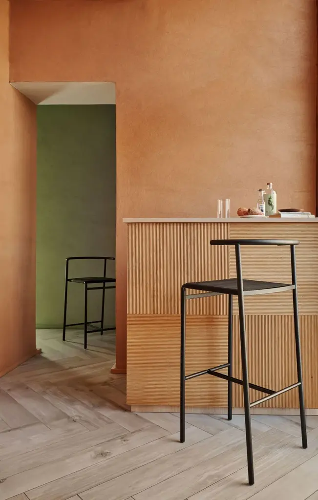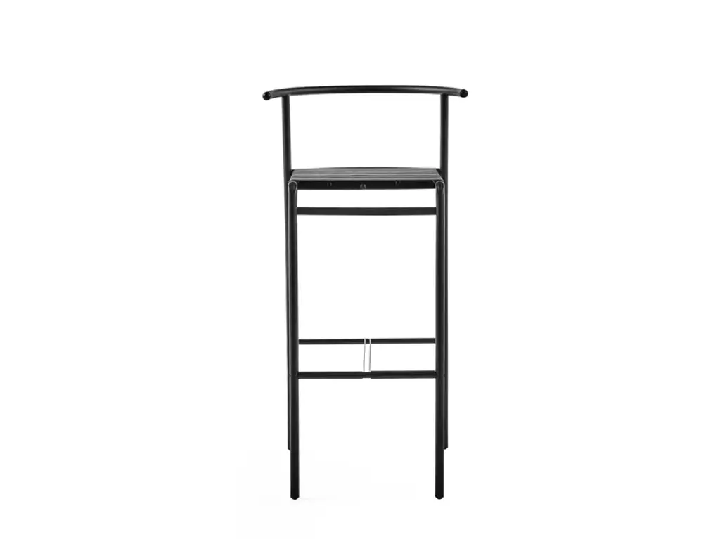 A chair designed by the most famous French creator for the then most famous French café: Café Costes in Paris. This stackable chair is solid and comfortable: the ideal chair for a café. Divised in close cooperation with Baleri Italia, the minimal and timeless lines of the Café Chair can elegantly match with all both public and private interiors and lifestyles.Kitchen/bar stool with structure in steel tubing painted with epoxy powders in metallic silver or matt black RAL 9005. The seat is in lasten: latex rubber and polypropylene belting in black.
