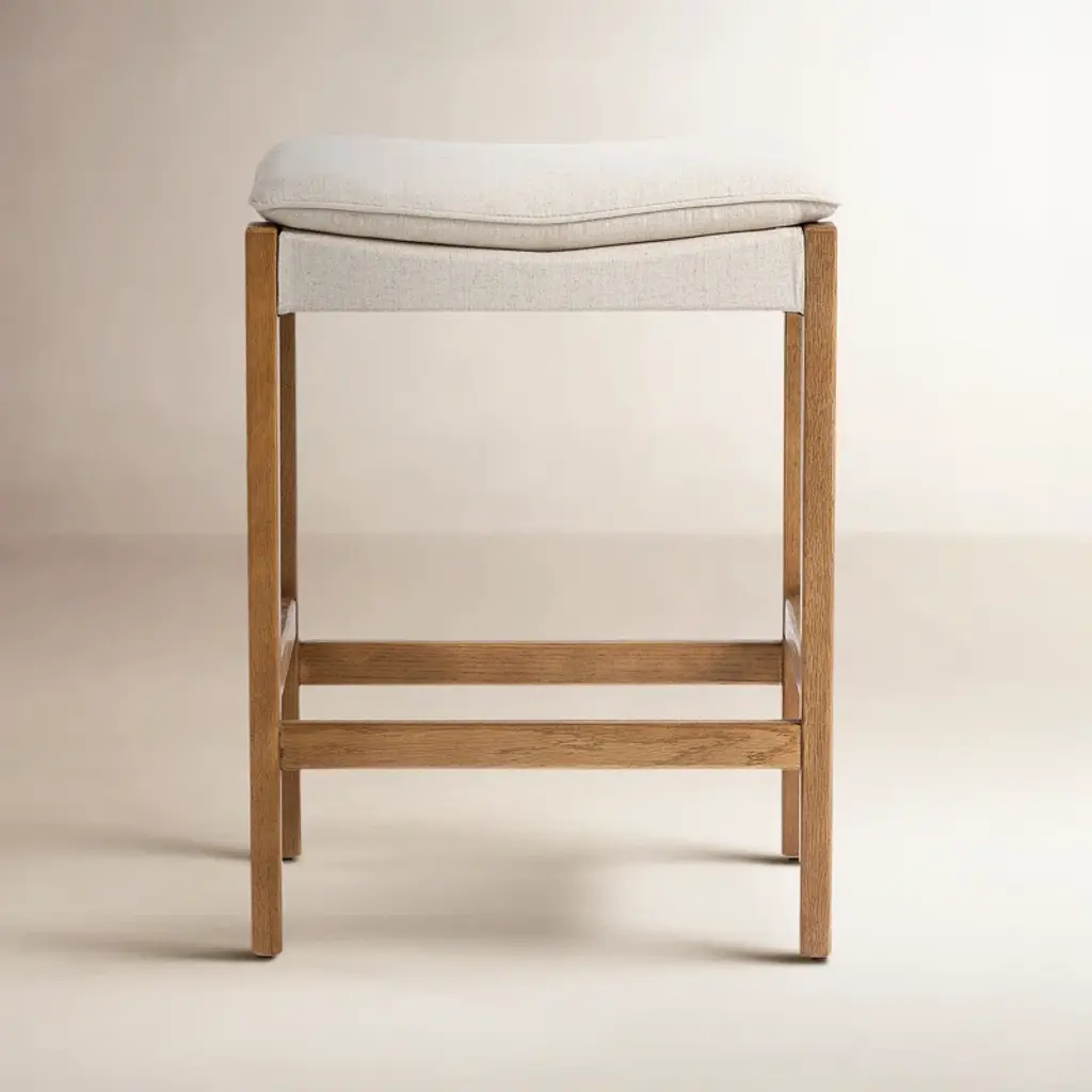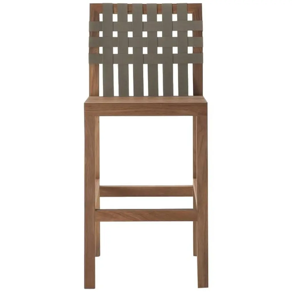 The Calvero Barstool, handcrafted from FSC® certified teak wood, features a unique handwoven design. This sustainable furniture piece offers elegance, durability, and eco-friendly charm for bar or counter seating.