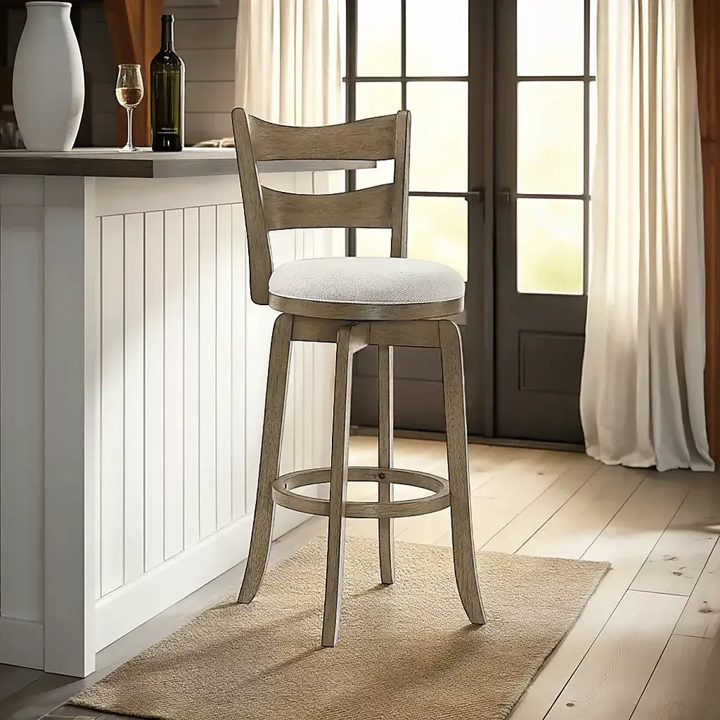 Introducing the Cannonics I brown and cream barstool, a stylish and functional addition to any home. The round seat shape, upholstered in a soft cream color, offers a contemporary look that complements various decor styles. Crafted from durable rubberwood and polyester, this stool showcases a sleek brown finish that enhances its modern aesthetic. The finish is applied meticulously, ensuring a smooth and elegant appearance. With no assembly required, you can enjoy your new stool right out of the box, making it a convenient choice for busy lifestyles. Designed with practicality in mind, this stool includes a footrest for added comfort during prolonged seating. Its armless design allows for easy movement and versatility, making it suitable for both casual gatherings and formal occasions.