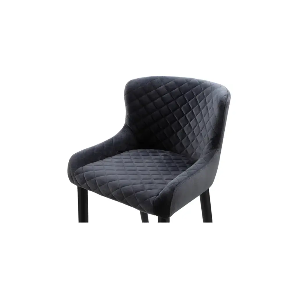 With a wide, comfortably padded seat and stunning diamond-tufted upholstery, this stool is a stylish addition to kitchen islands or home bars. It sits on tapered black-finished metal legs and has a footrest for added comfort. Up top, the seat and back are upholstered in polyester velvet for the glam look without all the upkeep of traditional velvet. This stool requires some assembly.