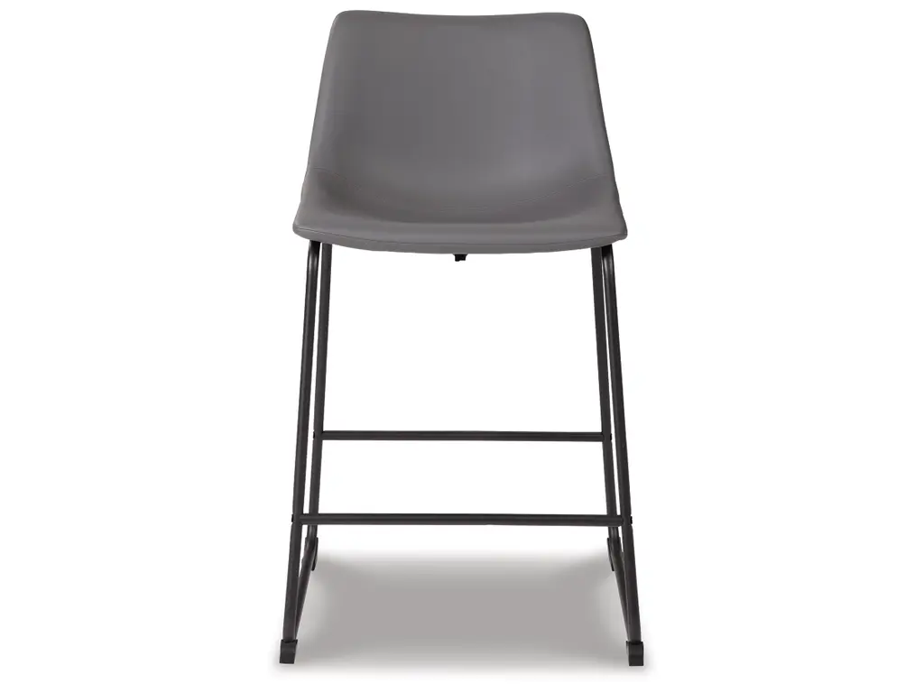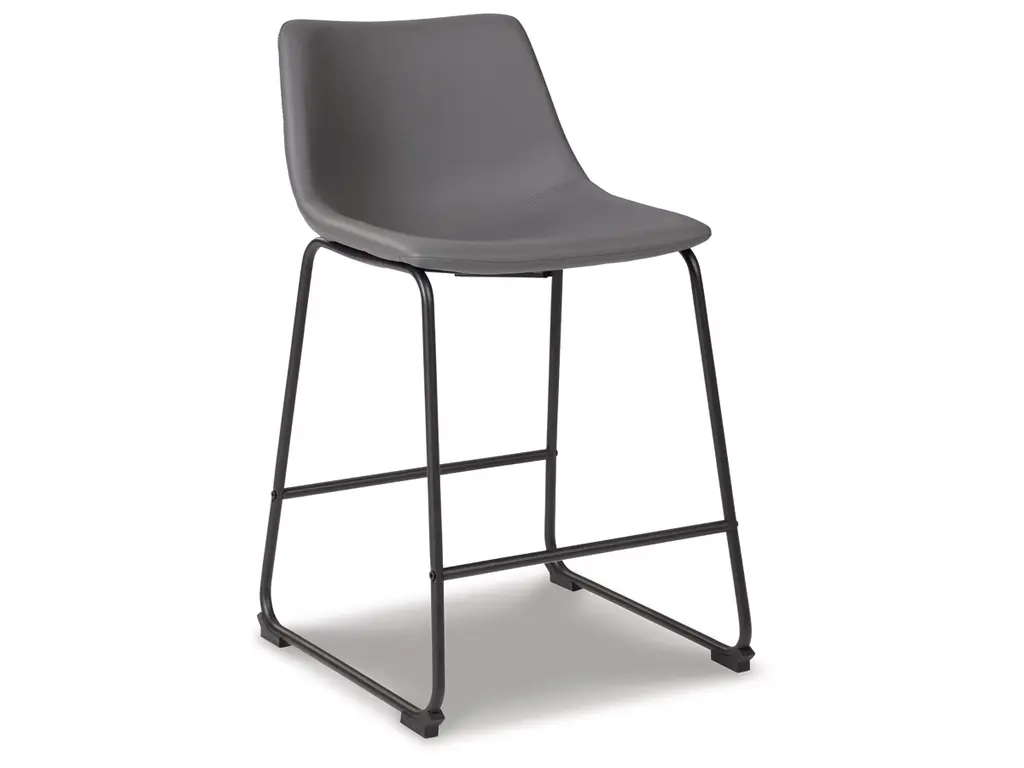 With its distinctive contoured bucket seat and tubular metal base, the Centiar bar stool serves up a fresh twist on mid-century inspired style. Chic gray faux leather upholstery adds to the aesthetic. What a timeless look for eat-in kitchens and casually cool dining rooms.