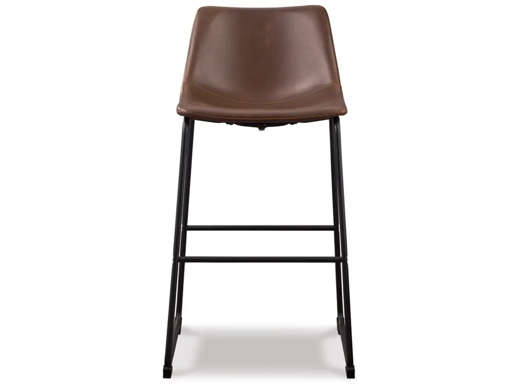 With its distinctive contoured bucket seat and tubular metal base, the Centiar bar stool serves up a fresh twist on mid-century inspired style. Faux leather upholstery has a charming medium brown tone. What a timeless look for eat-in kitchens and casually cool dining rooms.