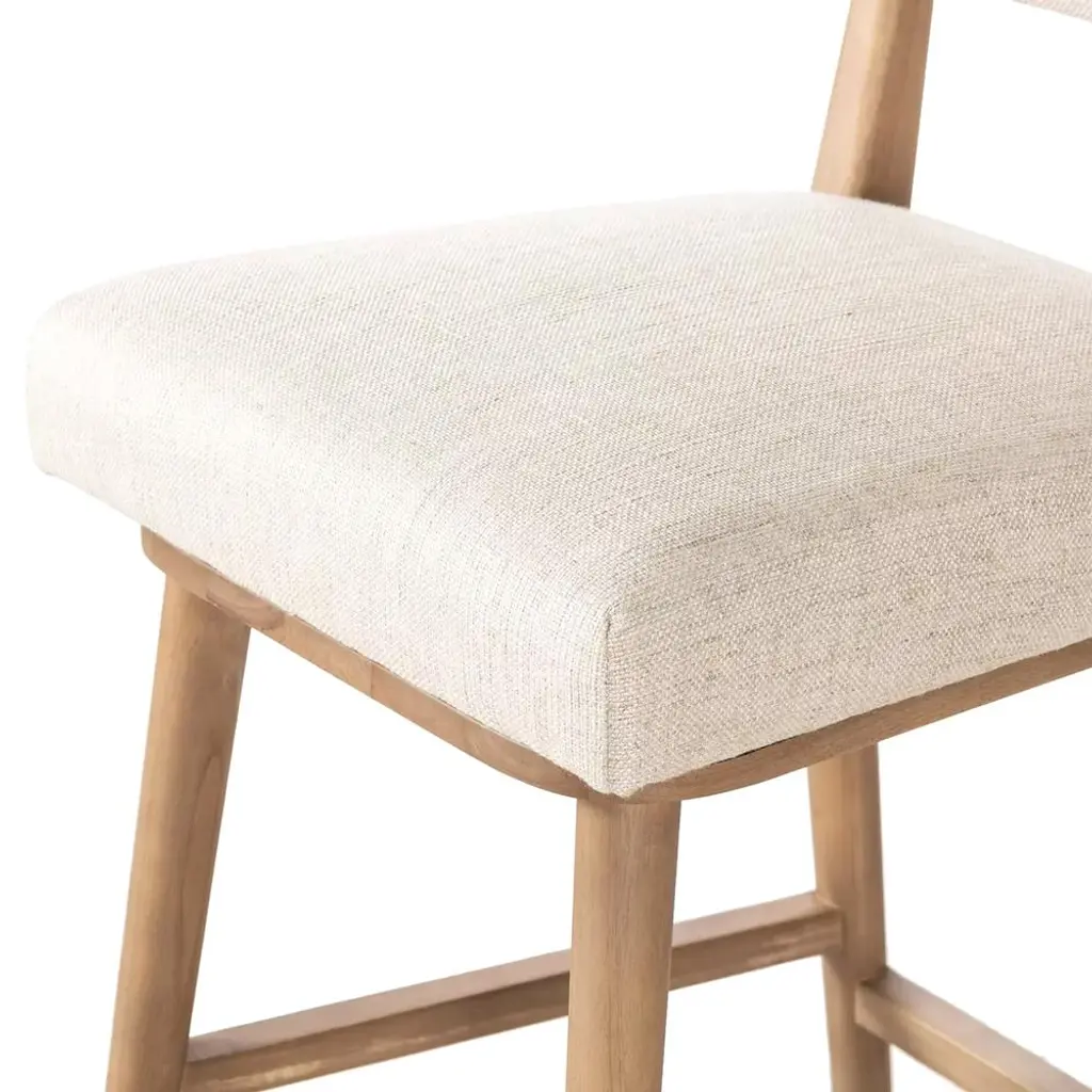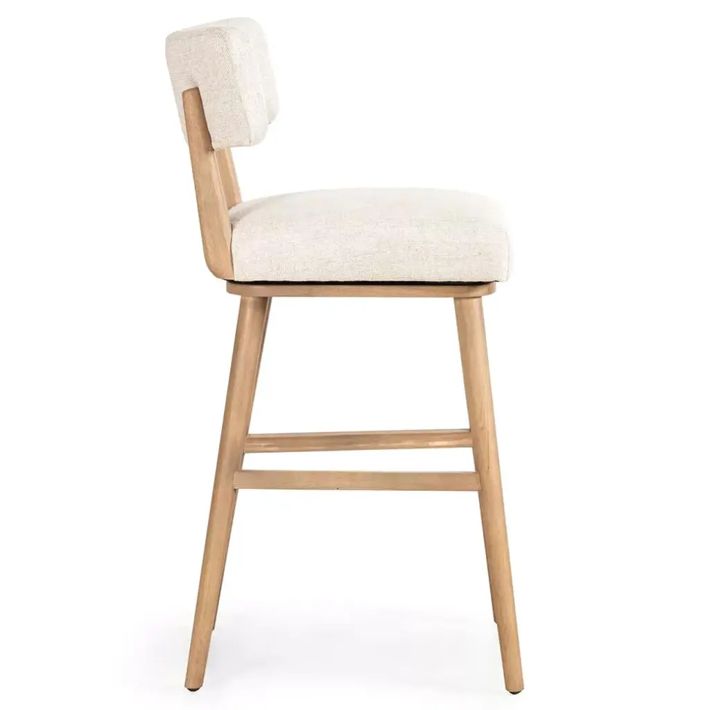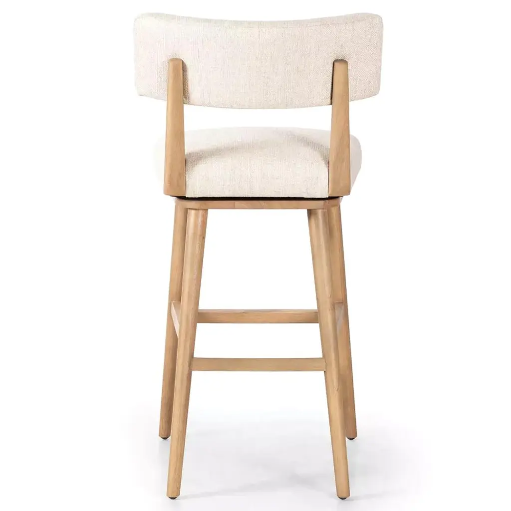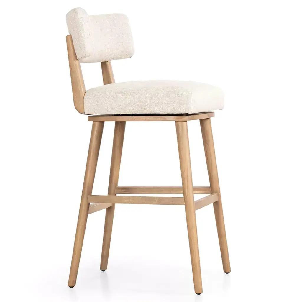 Cerise Modern Cream Upholstered Brown Frame Wood Swivel Bar Stool