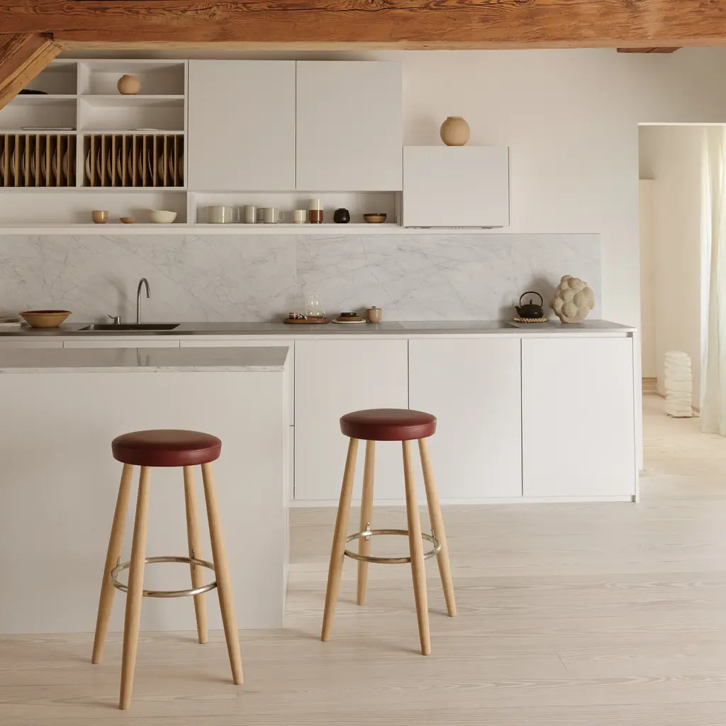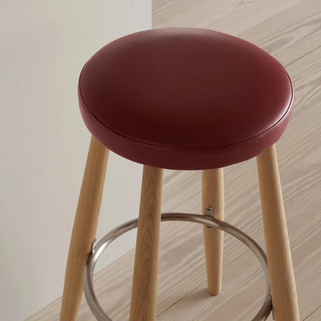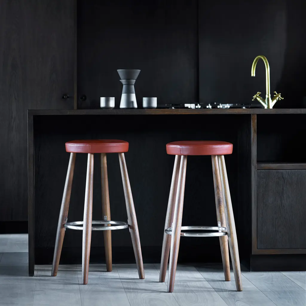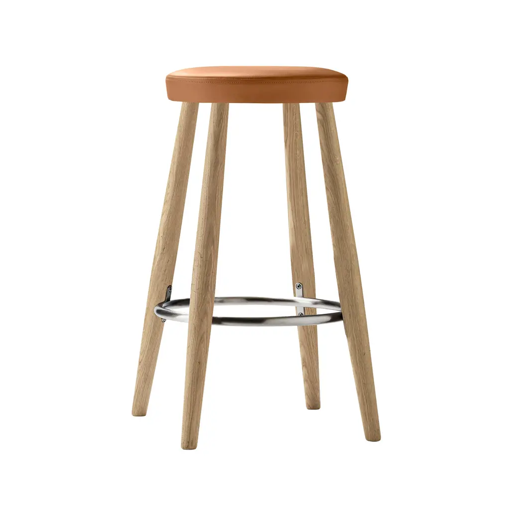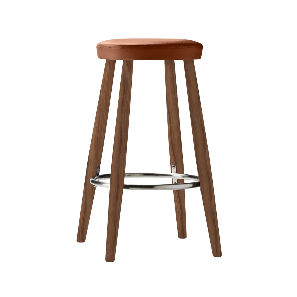 Echoing his breakthrough 1960s Danish modernism, Hans J. Wegner's CH56 and CH58 upholstered barstools combine essential functionality and a personalizing option with custom-upholstered seat cushions. Debuting in 1985, the sibling designs offer comfortable and practical seating in bar and counter heights. The styling speaks for itself, with the stools carefully crafted in solid oak or walnut with a range of select wood finishes and incorporating an integrated stainless steel footrest.
