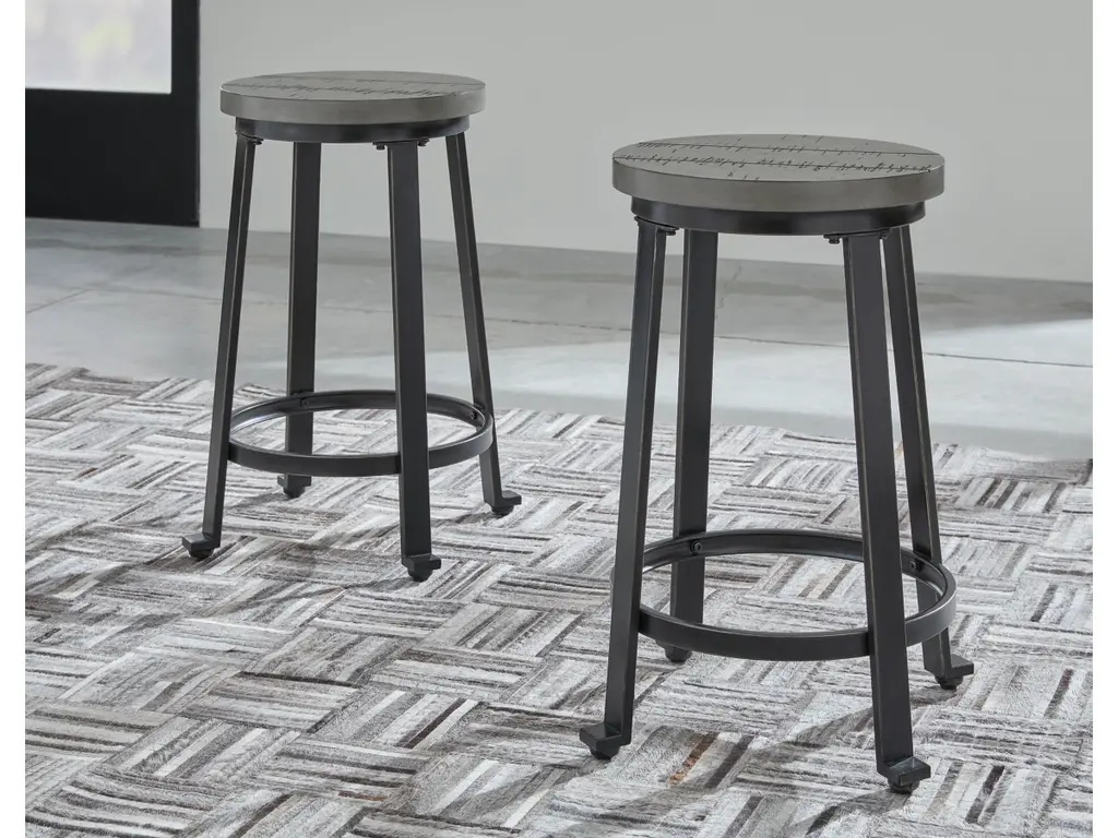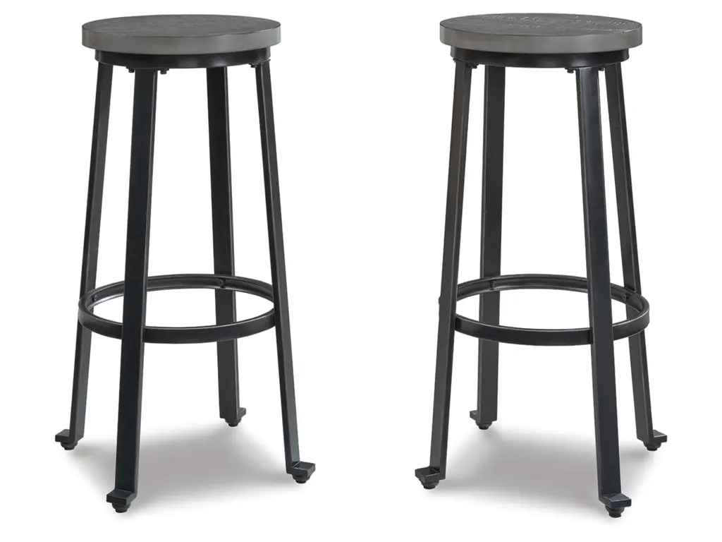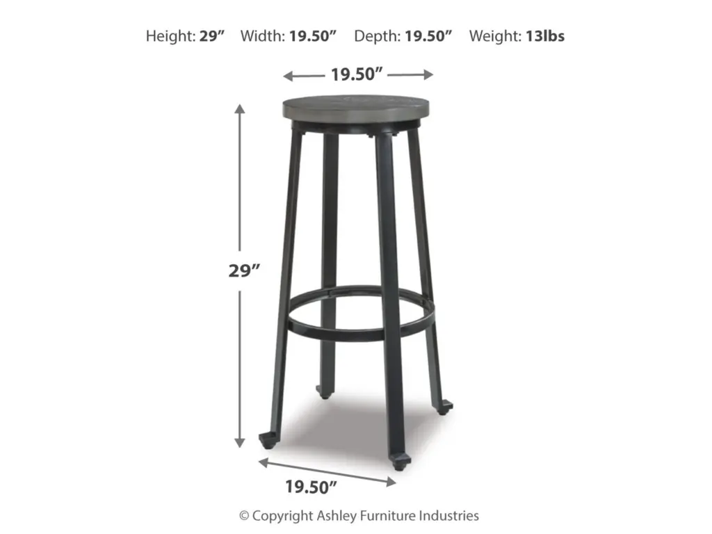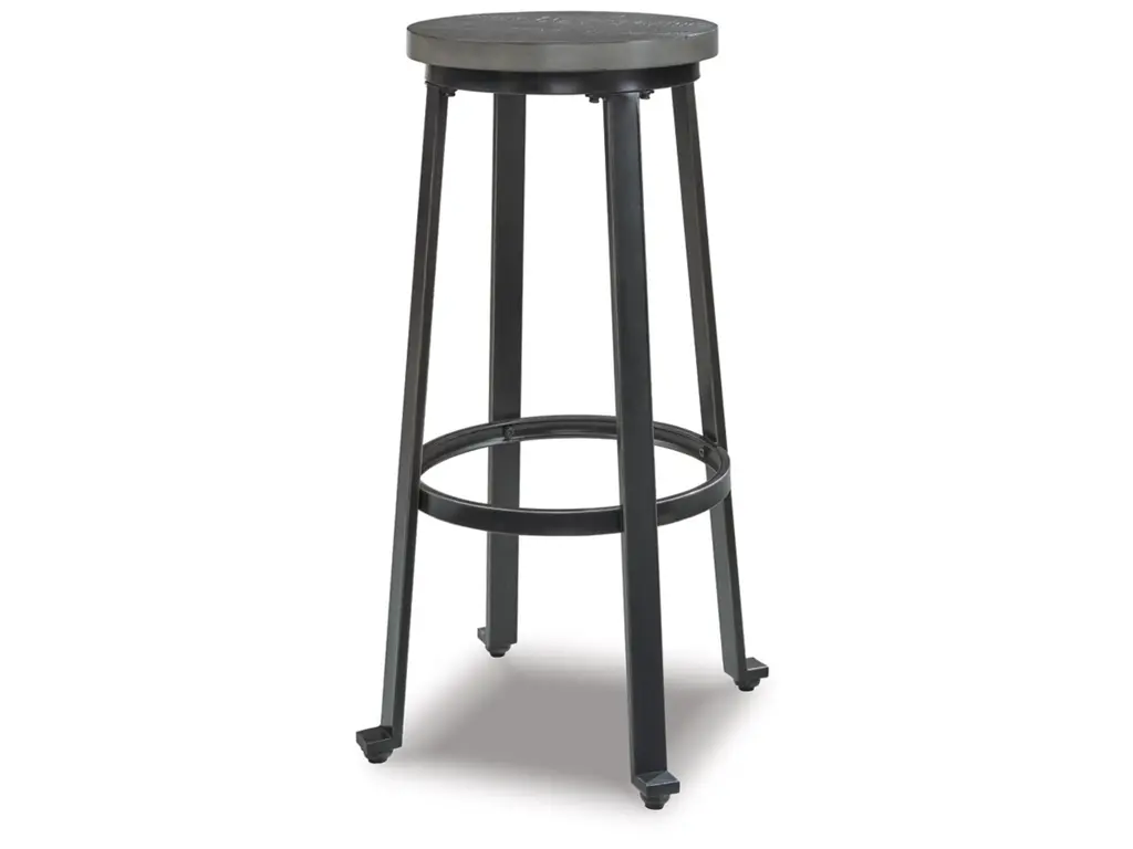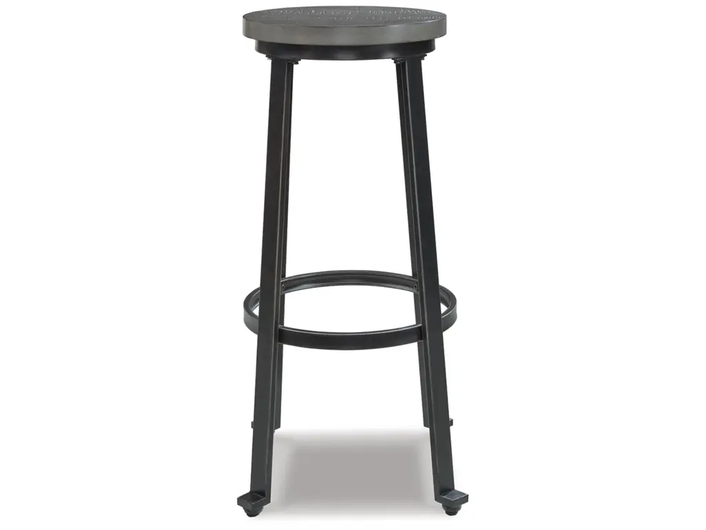 Talk about a cool bar stool. The Challiman tall bar stool's metal frame has a blackened pewter-tone finish and a distressed antique gray wash seat. The replicated plank design adds modern farmhouse feel that welcomes everyone home.