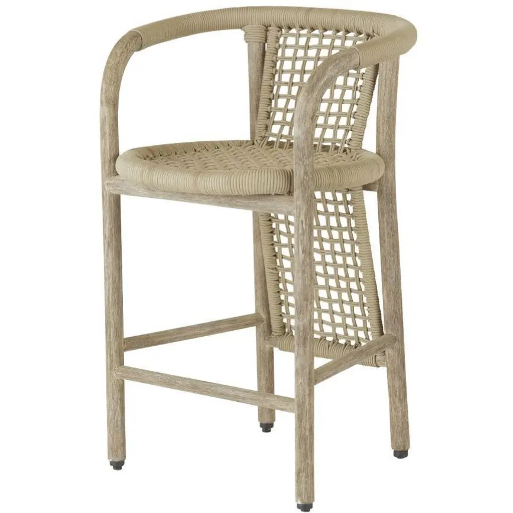With a retro appeal, our Chapman bar stool is both nostalgic and completely contemporary. The bohemian influence of 1970s avant-garde wicker inspired the macrame rope seat and woven back. Crafted of willow teak wood and synthetic rope, its cape-style back offers a decorative detail that will draw the eye from any corner of the room. Finish will vary.