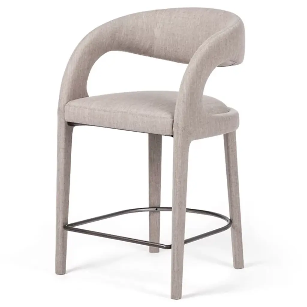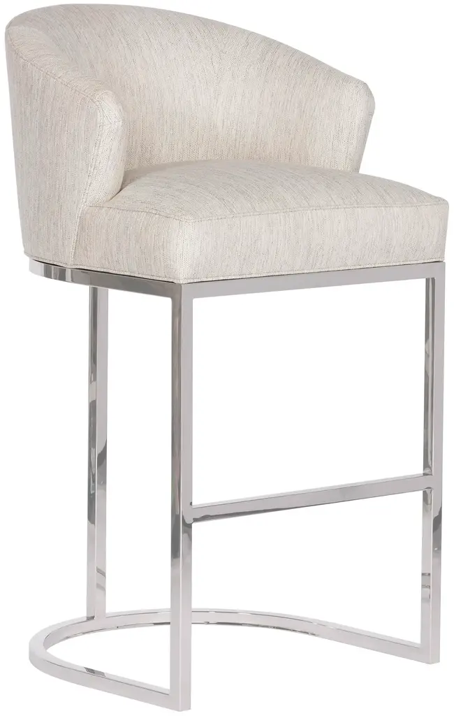 Vanguard Furniture's artisans hand-apply all finishes, taking careful steps to ensure each piece has the care and attention required to enhance the natural character of the furniture. No two pieces are the same — every piece of furniture is truly unique. The Charley Bar Stool features Index Porcelain fabric with a brushed Nickel metal barrel Base.