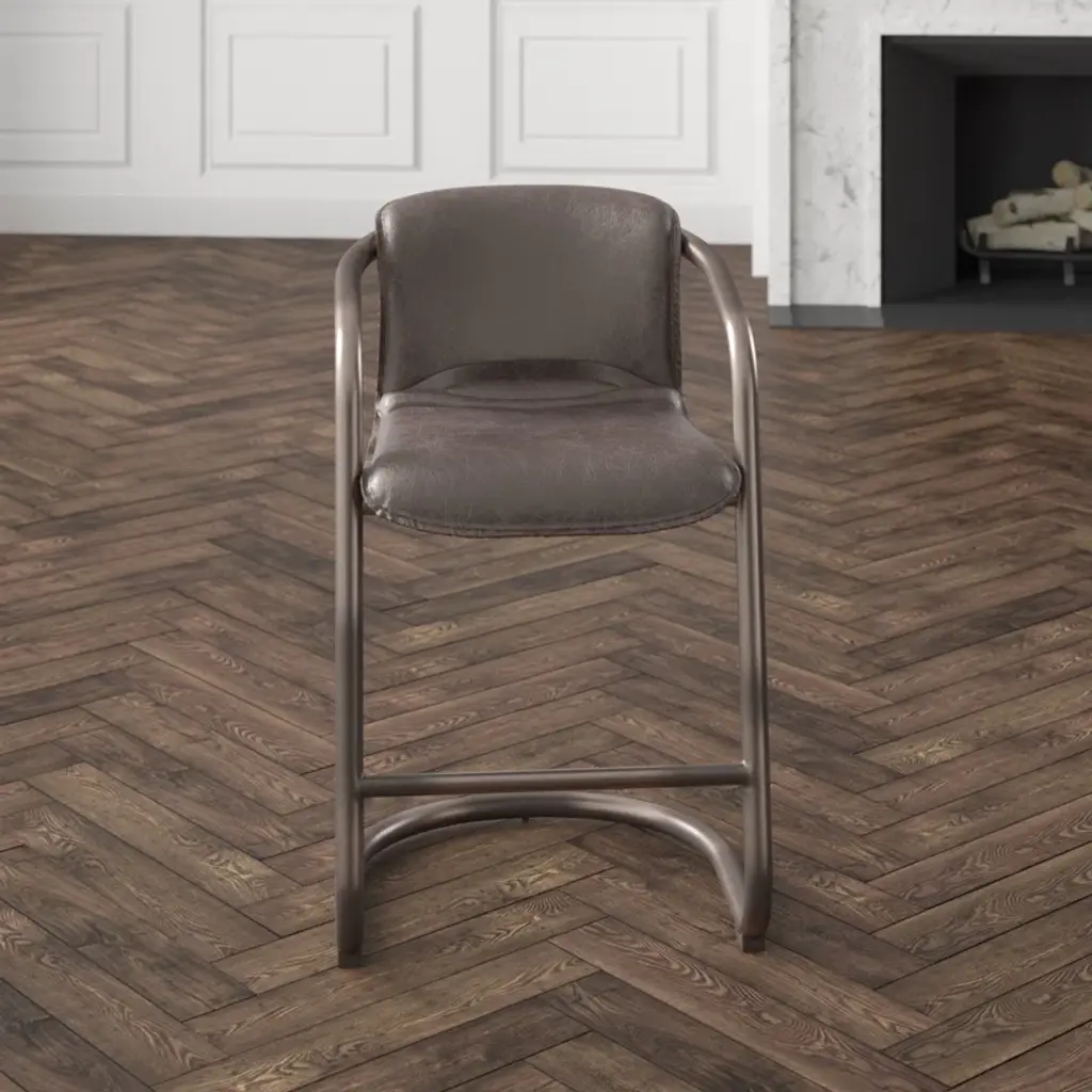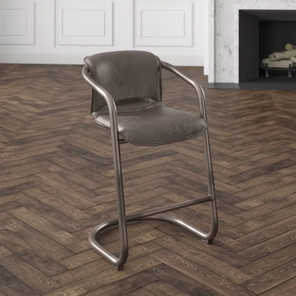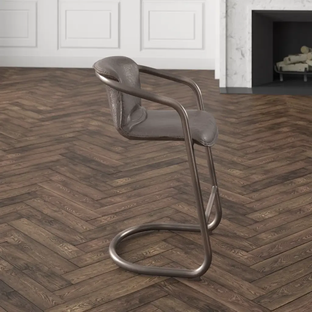 Their Chiavari collection of retro-inspired chairs add vintage charm to your dining or kitchen space. The distressed black leather seat has a soft feel for ultimate comfort, while the exposed trim provides vintage flair. The U-shaped steel frame and legs in rustic, distressed brushed nickel finish include levelers with caps to protect all types of flooring. Combine with your favorite bar-height gathering table for a casual dining space or add a few to your eat-in bar for the perfect work space. This preassembled bar chair is ready-to-use and of the finest quality, and with its classic design and elegance, it will make an effortless addition to any home.