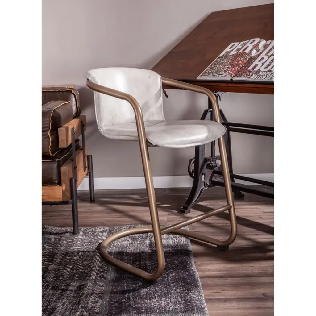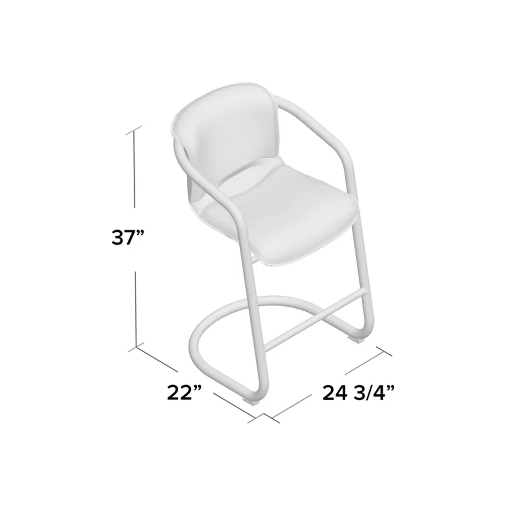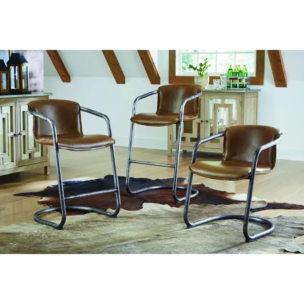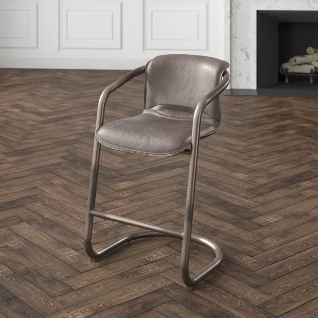 Their Chiavari collection of retro-inspired chairs add vintage charm to your dining or kitchen space. The distressed black leather seat has a soft feel for ultimate comfort, while the exposed trim provides vintage flair. The U-shaped steel frame and legs in rustic, distressed brushed nickel finish include levelers with caps to protect all types of flooring. Combine with your favorite bar-height gathering table for a casual dining space or add a few to your eat-in bar for the perfect work space. This preassembled bar chair is ready-to-use and of the finest quality, and with its classic design and elegance, it will make an effortless addition to any home.