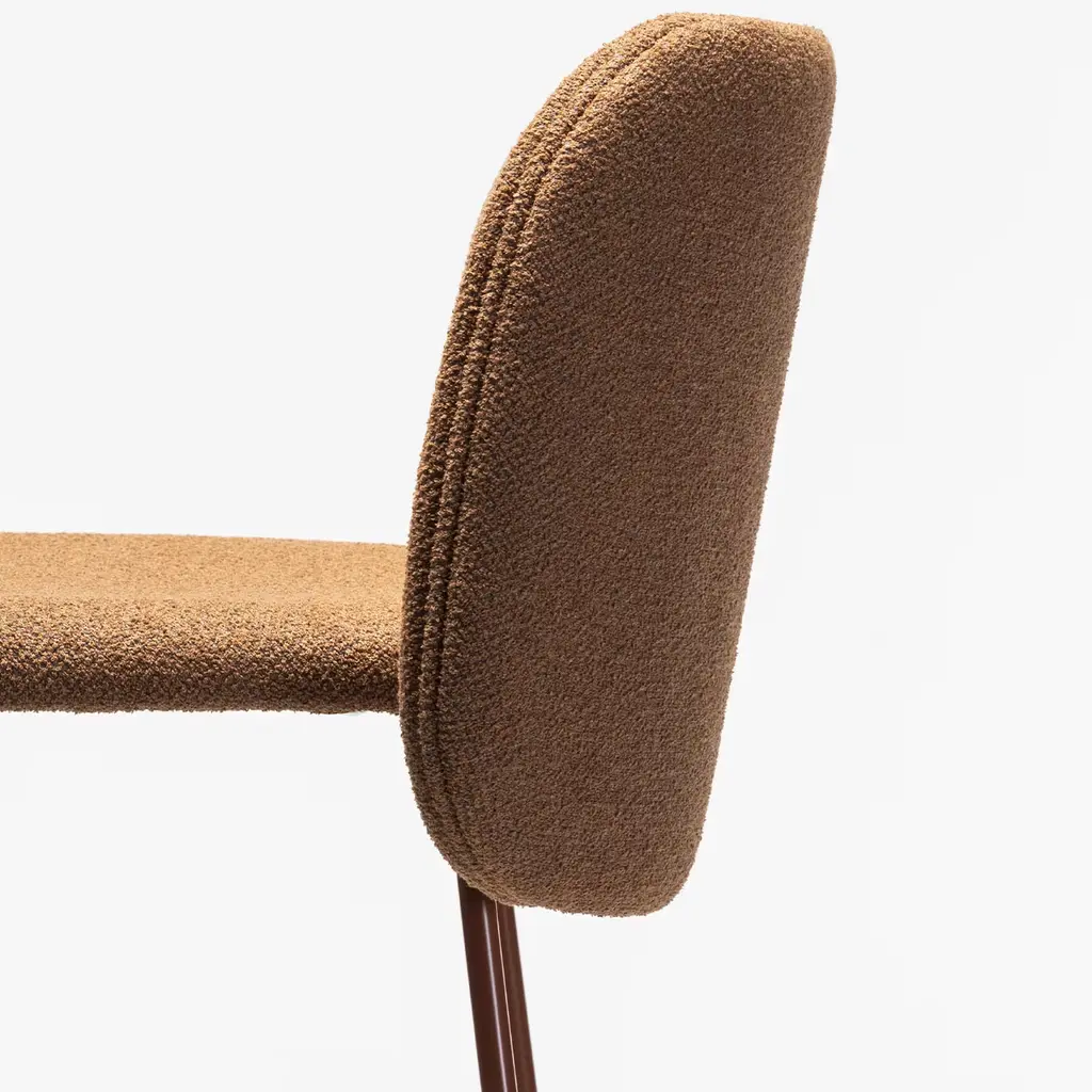 Sleek and slick, the Chips collection is a true eye-catcher, with its unmistakably upbeat, trendy style. The back of the bar stool is without doubt its most iconic and characterizing feature. With its ample curves and generous size, it almost seems to transcend the limits of mere functionality, and by extending beyond the seat, it redefines its space in novel ways, giving rise to an original and captivating creation. Terracotta powder-coated steel frame, upholstered seat with fabric.