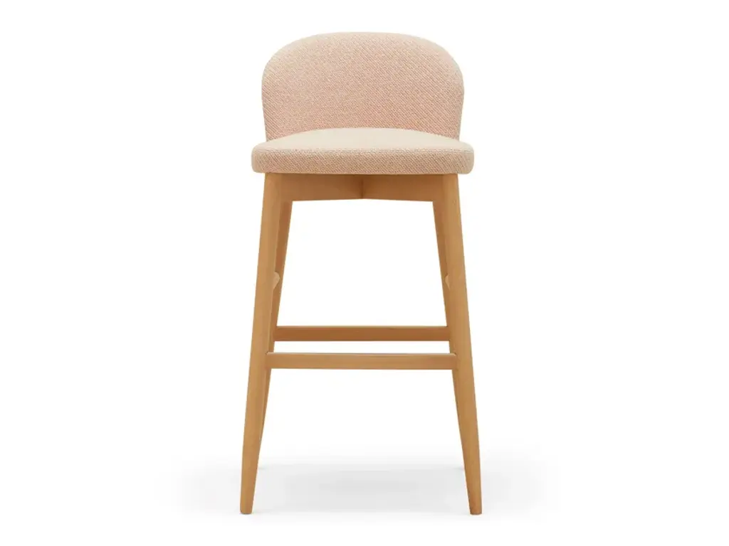 Sleek and slick, the Chips collection is a true eye-catcher, with its unmistakably upbeat, trendy style. The back is without doubt its most iconic and characterizing feature. With its ample curves and generous size, it almost seems to transcend the limits of mere functionality, and by extending beyond the seat, it redefines its space in novel ways, giving rise to an original and captivating creation. Natural polished beech wood base, upholstered with fabric.