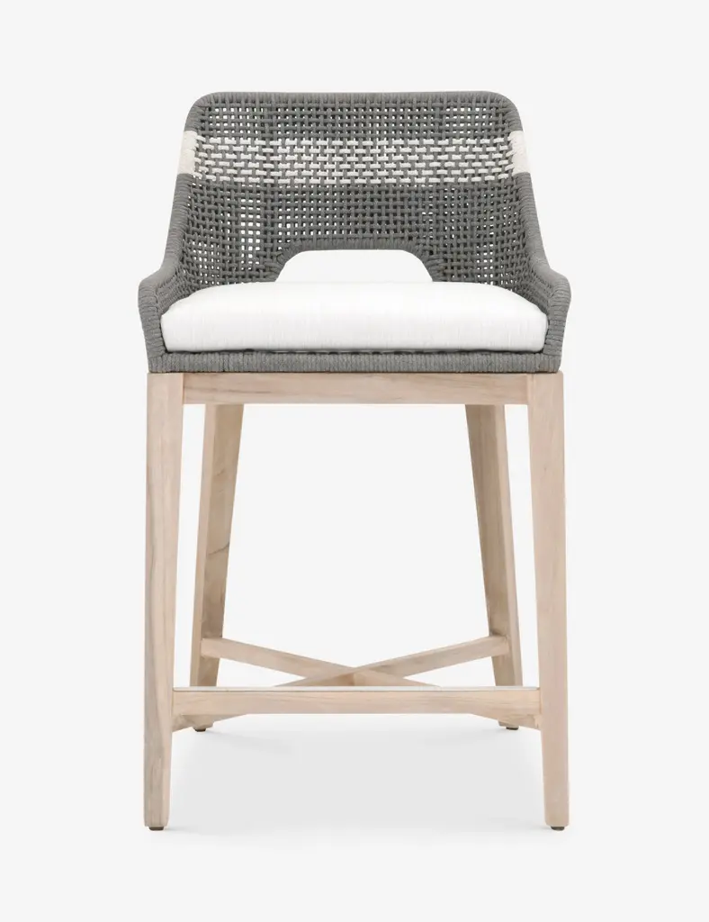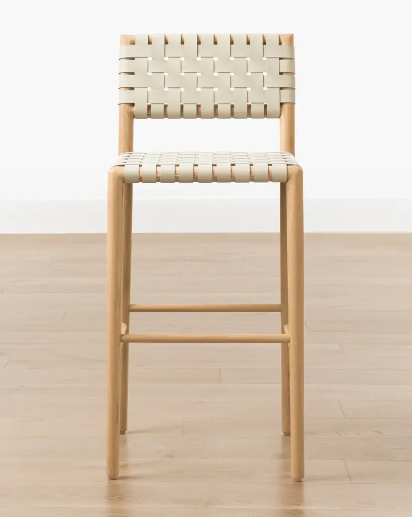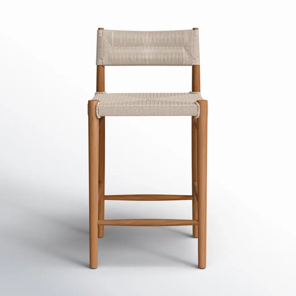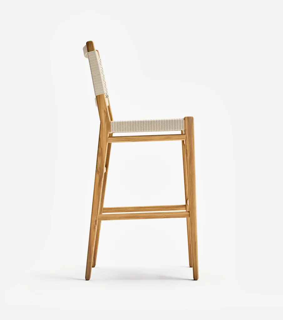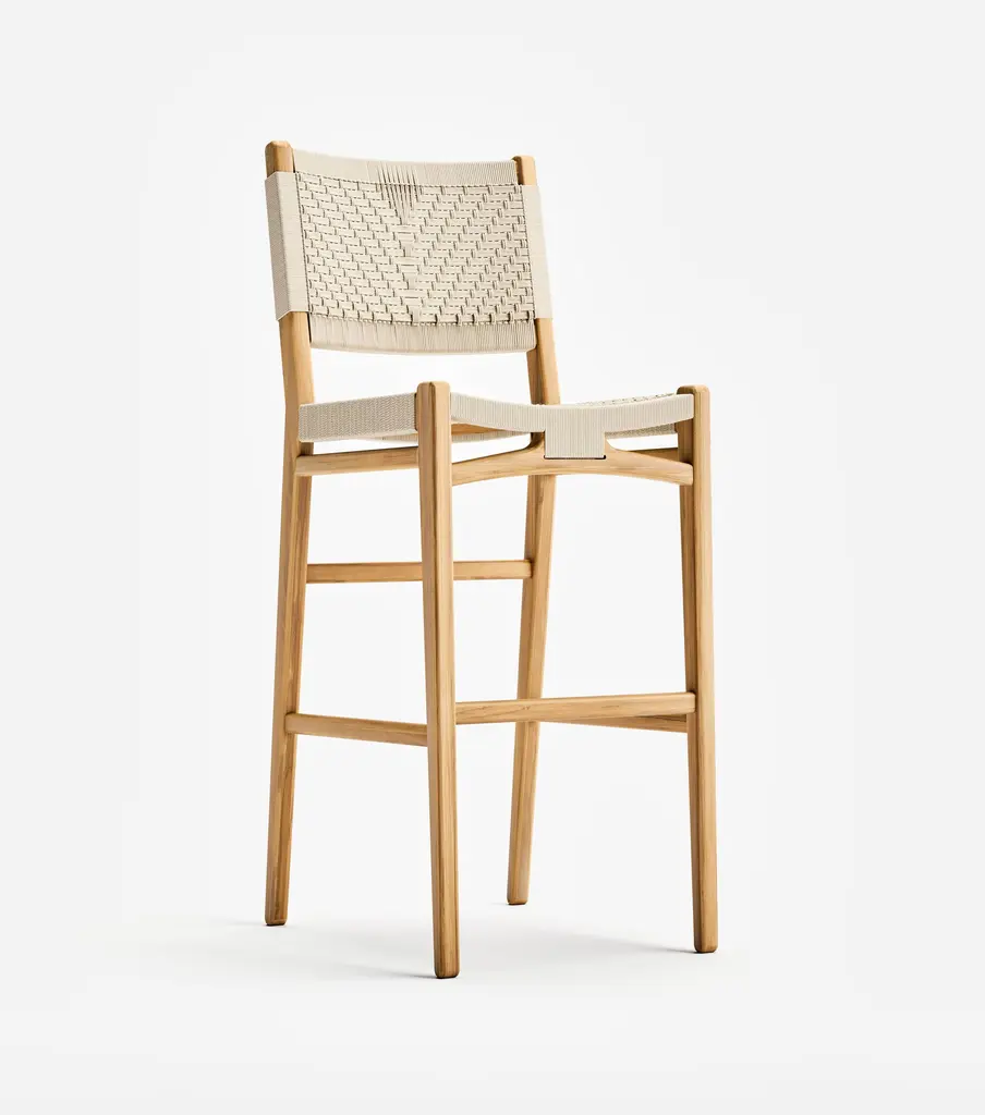 Inspired by Danish Cord Mid-Century designs and traditional Japanese woodworking the solid teak Chontales barstool brings warm textures and woven rope details to the dining area.