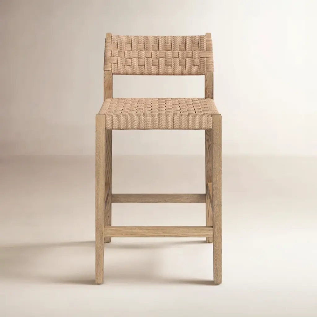 Chontales Barstool With Backrest | Naturaline V Braided Cord