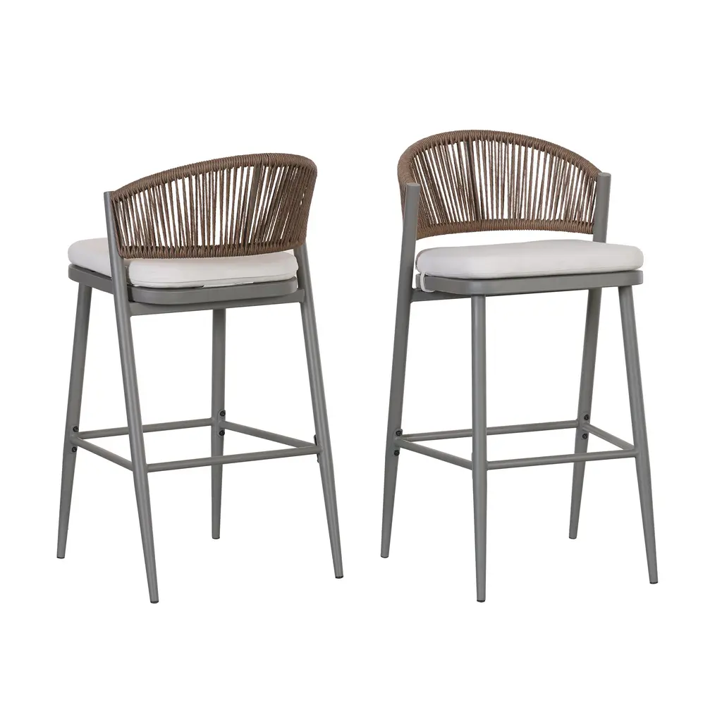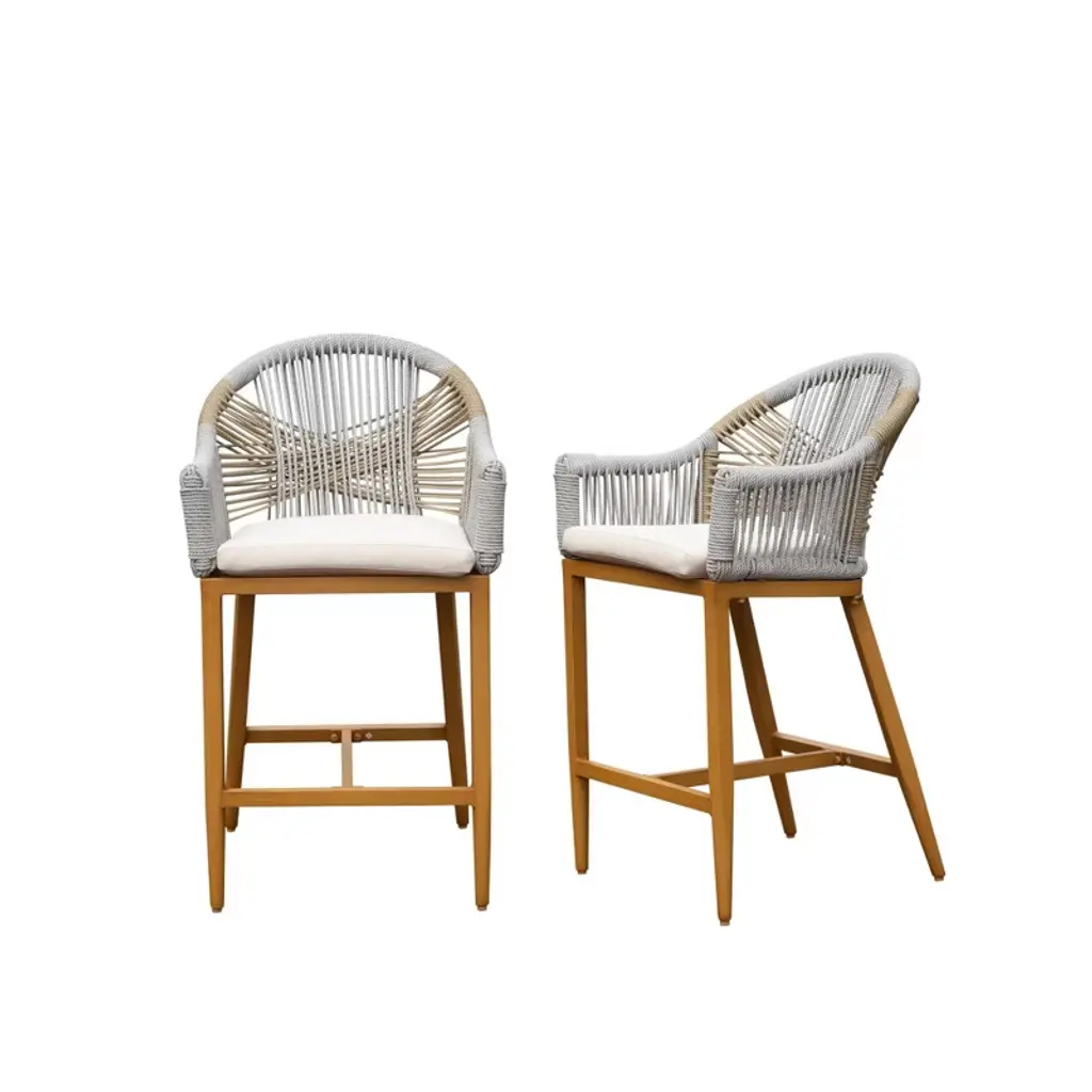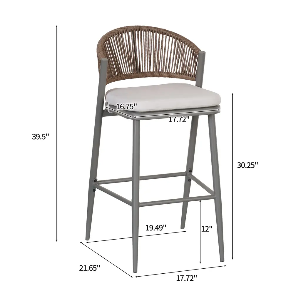 Elegant Outdoor Bar Seating: Elevate your patio or garden with these beautifully designed barstools. Featuring a refined scallop-shaped backrest and a sleek silhouette, they bring a perfect blend of sophistication and comfort to any outdoor bar or high-top dining space. Sturdy Metal Frame: This barstool set is built with sturdy metal. This material is rust-resistant which will further extend the life of your product. Handwoven PE Rattan Backrest: The intricately woven rattan-style backrest not only enhances the aesthetic appeal but also provides a breathable and comfortable seating experience. Designed for durability, this stylish detail blends seamlessly with any outdoor decor. Water-Resistant Cushions for Lasting Comfort: Each stool is topped with a plush foam-filled cushion covered in water-resistant fabric, offering enhanced comfort while ensuring easy maintenance. Perfect for outdoor entertaining, these cushions maintain their look and feel even with regular use. Effortless Assembly and Versatile Placement: Designed for convenience, this barstool set comes with all necessary tools and instructions for a quick setup. Ideal for patios, balconies, or poolside bars, they provide stylish and functional seating for any outdoor gathering.