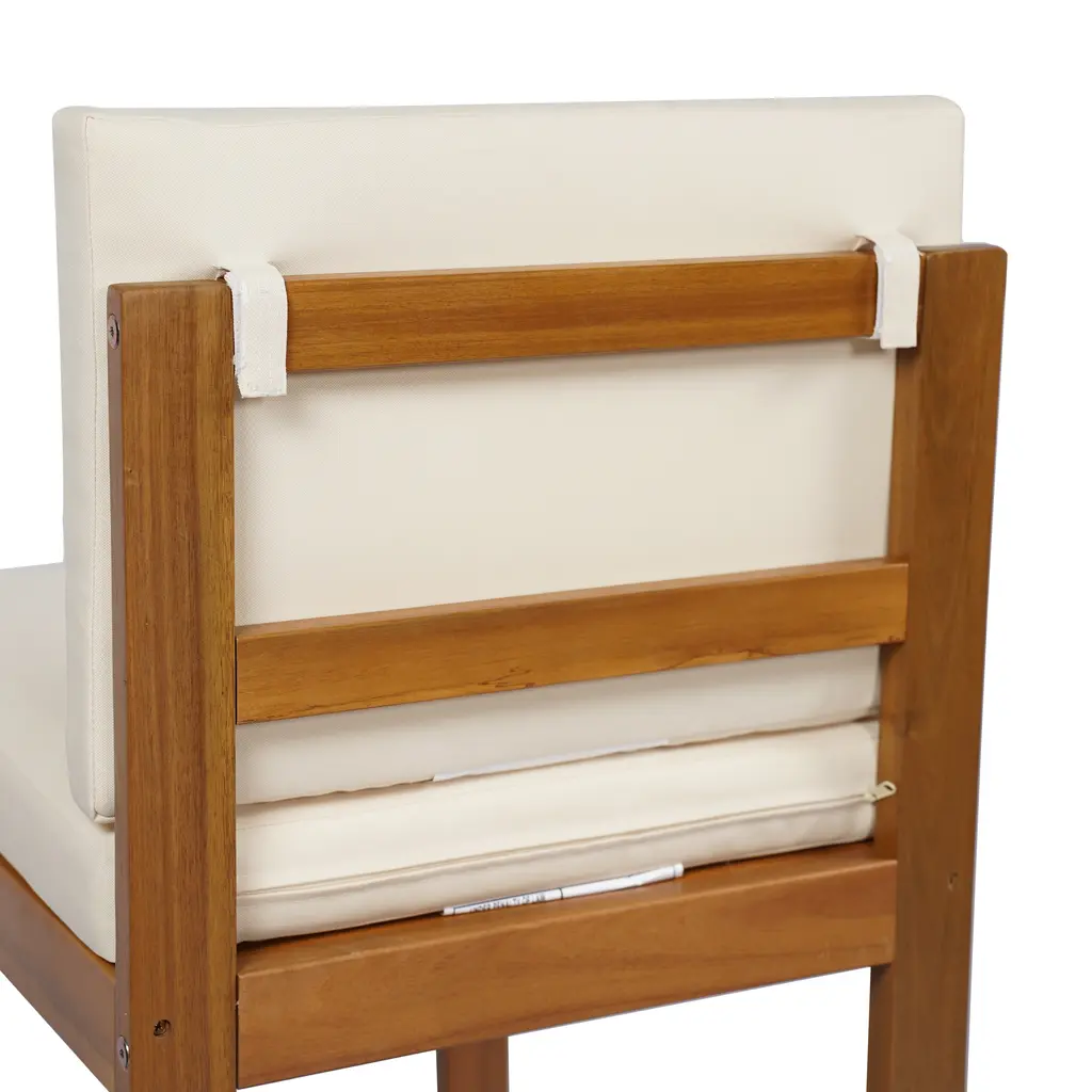 Elevate your outdoor dining space with this set of two Acacia Wood Barstools. Featuring a timeless design, sturdy construction, and water-resistant cushions, these barstools combine rustic charm with modern comfort. Durable Acacia Wood Construction: Crafted from solid acacia wood, these stools offer exceptional strength and durability, perfect for outdoor use. Classic Meets Contemporary Design: Tapered legs and clean lines create a balanced silhouette that blends rustic charm with modern elegance. Comfortable Water-Resistant Cushions: Beige seat cushions provide supportive comfort and are covered in a non-porous fabric that resists light spills. Versatile Outdoor Seating: Designed for bar-height counters, these stools are ideal for outdoor kitchens, poolside bars, or high-top patio tables. Easy Assembly Included: Minimal assembly required—tools and instructions included for quick setup.