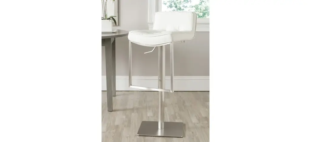 Sleek and sophisticated, the adjustable Ciera Bar Stool brings contemporary European flair to your kitchen or family room. Ciera is crafted with a stainless steel frame and white quilted regenerated and polyurethane leather, elevating the dining experience to brand new heights.