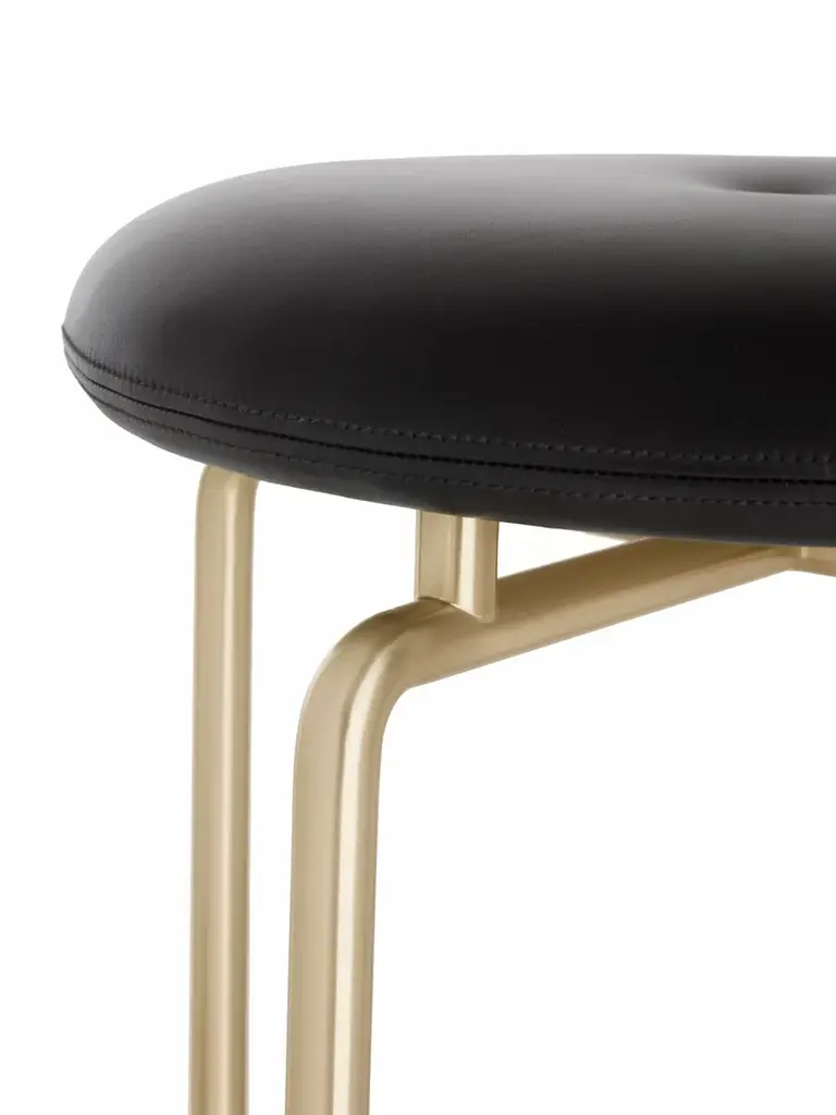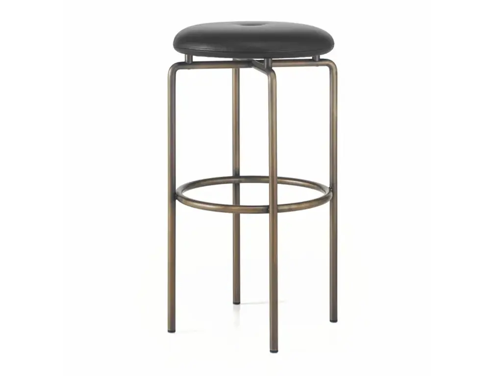 The Circular Bar Stool is a stool with an upholstered seat and a nanoceramic coated tubular steel frame. Base Options: Satin Nickel, Bronze, Satin Brass, Gunmetal nanoceramic coated tubular steel.The elegance and simplicity of the Circular Table Collection extends to a casual seat.A sturdy but agile floating presence is created by the stool’s base, made from circular sections of nanoceramic coated steel tubing. The legs are bent to the tightest possible radius for elegance and sophistication. Circular stanchions elevate the upholstered seat from the base creating the appearance of exceptional lightness. Available in dining, counter, and bar heights, the stool’s simplicity and purity complement any setting.