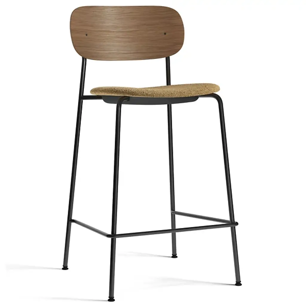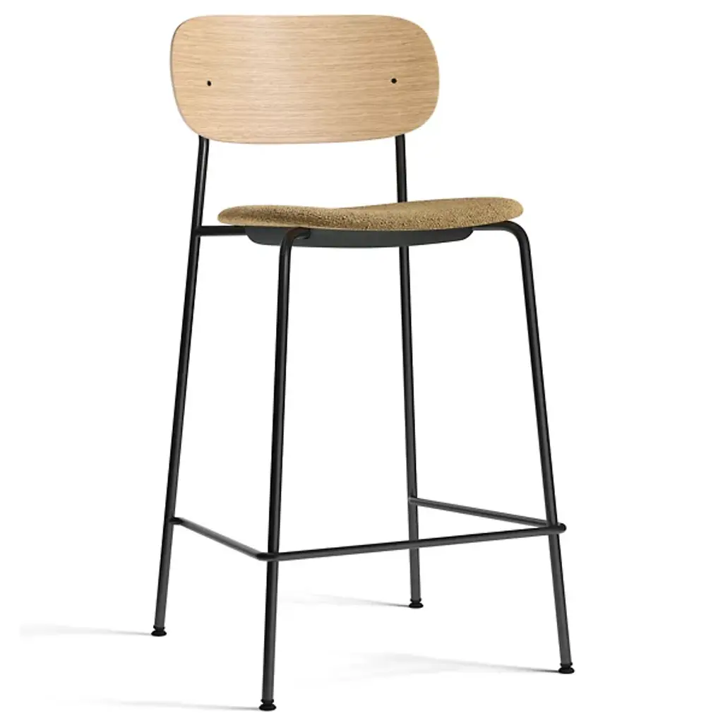 The Co Upholstered Seat Bar/Counter Stool from Audo Copenhagen is an open, comfortable construction that unites Scandinavian simplicity with contemporary expressiveness. Designed by Norm Architects and Els van Hoorebeeck, it’s made in Sweden from wood and plywood over powder-coated steel, surfaced by fabric or leather upholstery, and is BIFMA tested for safety and durability. The soft, strong surface is filled with foam for maximum comfort, creating a defined, sculptural appeal with rounded curves that give it a contemporary look.