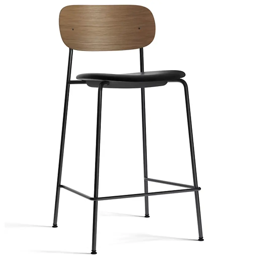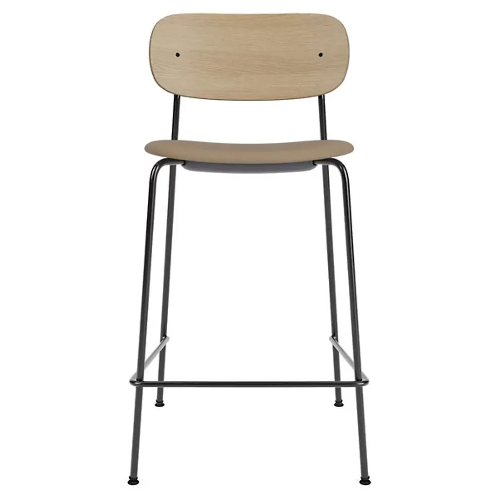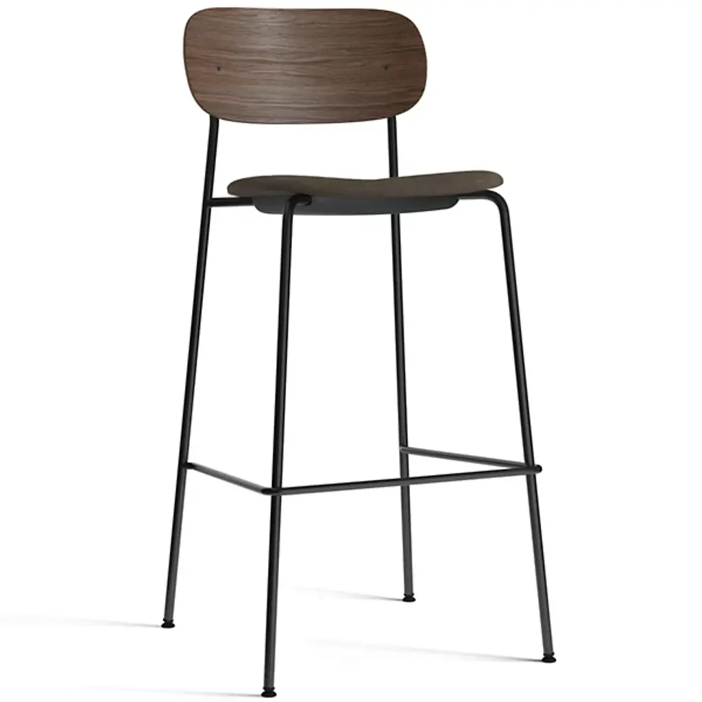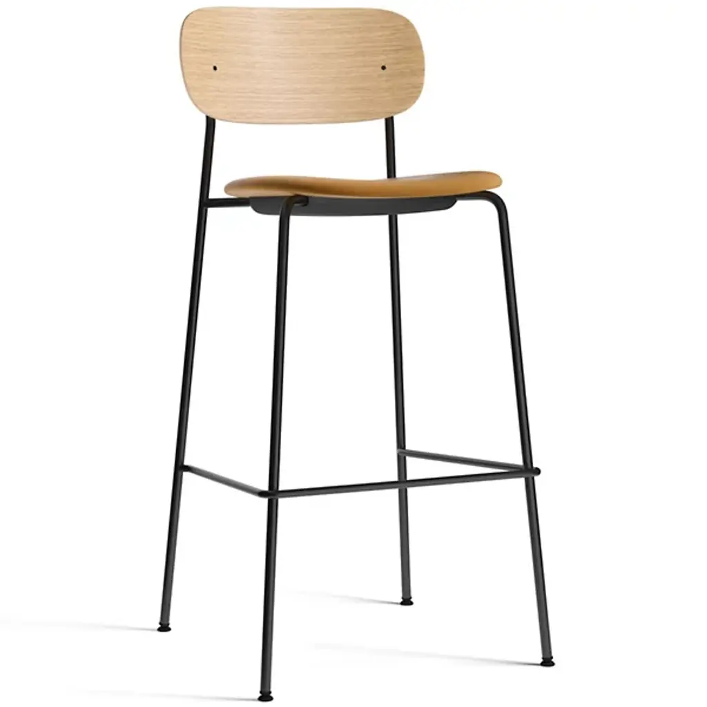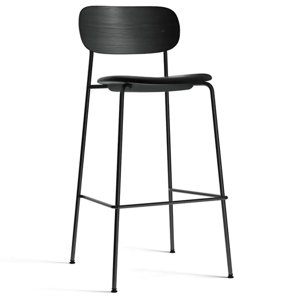 The Co Upholstered Seat Bar/Counter Stool from Audo Copenhagen is an open, comfortable construction that unites Scandinavian simplicity with contemporary expressiveness. Designed by Norm Architects and Els van Hoorebeeck, it’s made in Sweden from wood and plywood over powder-coated steel, surfaced by fabric or leather upholstery, and is BIFMA tested for safety and durability. The soft, strong surface is filled with foam for maximum comfort, creating a defined, sculptural appeal with rounded curves that give it a contemporary look.
