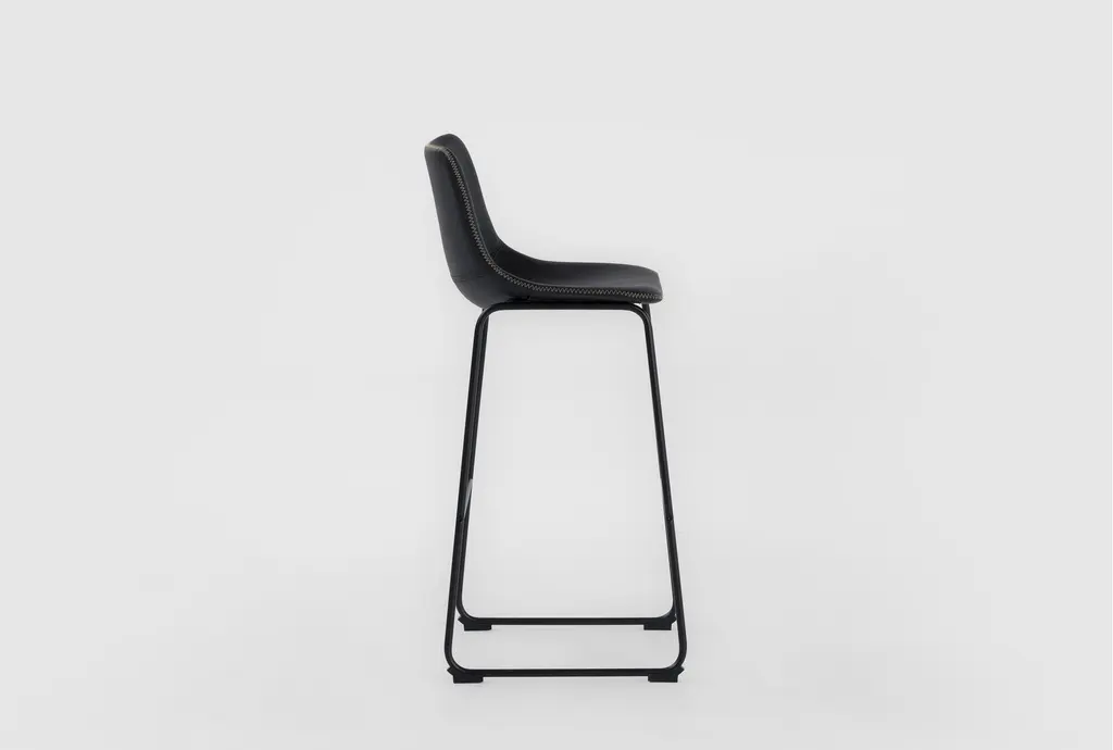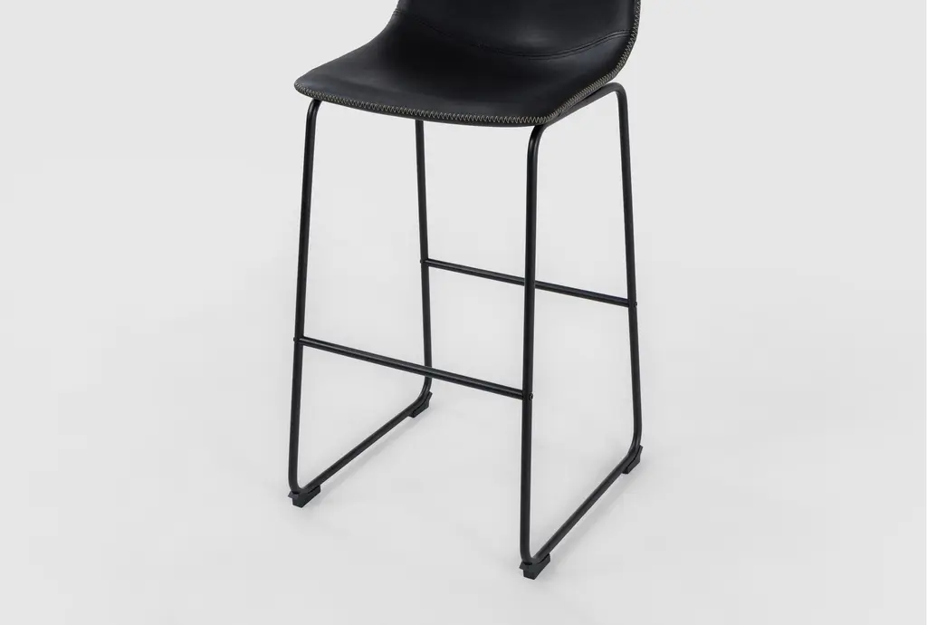 Contoured for comfort and style, our Cobbler bar stool with back brings an on-trend look to your entertaining space for less. Black powder-coated metal legs stand sleek and sturdy, while faux leather upholstery and a bucket seat offer tailored, handsome sophistication at an incredible value. Contrast baseball stitching detail is the perfect finishing touch.