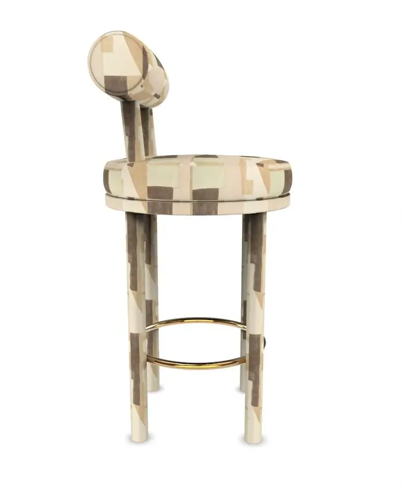 Contemporary modern moca bar chair in dan-chocolate fabric by studio rig for collector studio a chair that mixes both modern and classical design approaches. designed to hug the body, durable and solid chair features a body structure produced in solid wood. dimensions w 45 cm 17.7” d 52 cm 20.5” h 102 cm 40.2” - seat height 65 cm or h 112 cm 44.1” - seat height 75 cm product features solid oak wood structure. Uphostered in fabric.