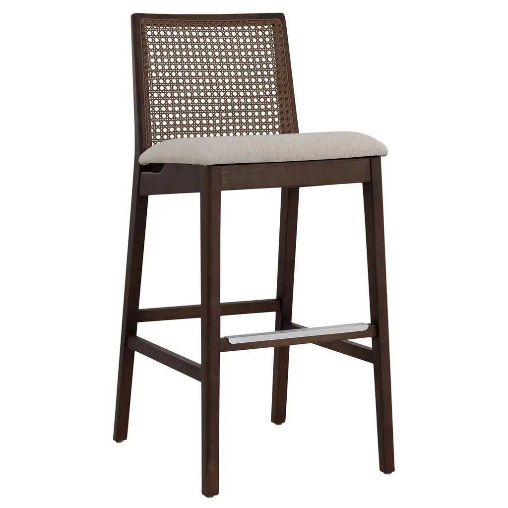 Contemporary Barstool Featuring Curved Rattan Backrest