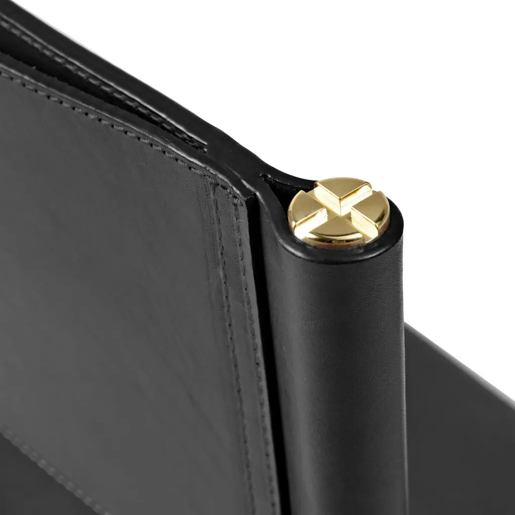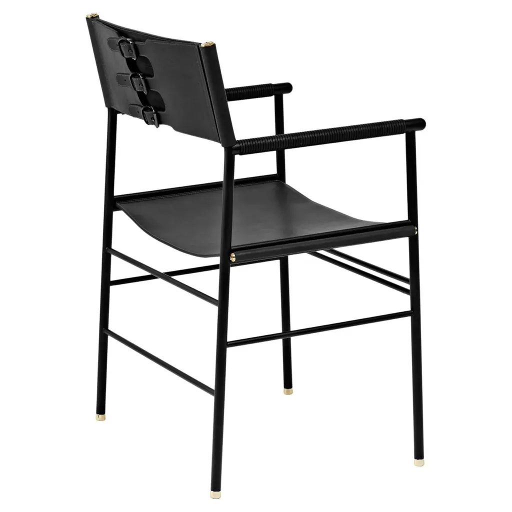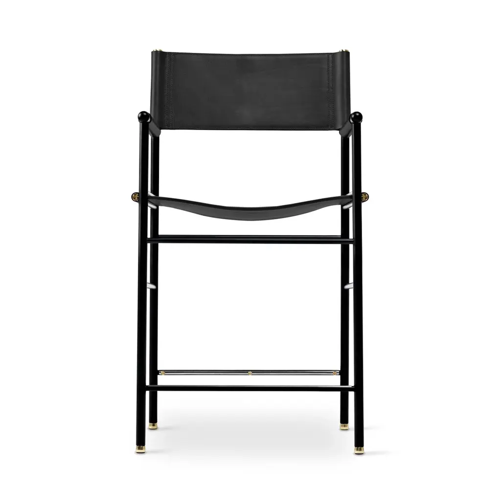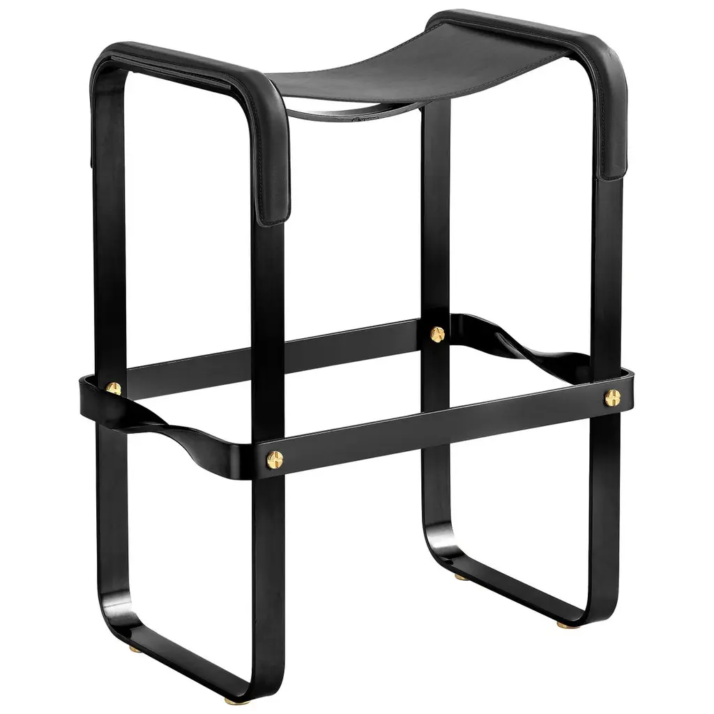 The “Repose” contemporary stool belongs to a collection that revisit the director chair collection, serene pieces where exclusivity and precision are shown in small details such as the hand-turned metal nuts and bolts that fix the leather surfaces, that go unnoticed at first sight.The robustness of the steel structure is combined with the delicacy of the rounded structure. The matte metal finishes evoke the passage of time and are complemented by vegetable tanned cowhide leathers that age gracefully with its use.The “Repose” armchair is designed and conceived as a tribute to director’s chair or luxury safari foldable furniture. All pieces are done with cold steel rods, machined on a turning lathe, black powder coated and lacquered with a matt rubber effect. Our signature screws are made with brass turning lathed, polished, and lacquered, these are the pieces that fix the saddle leather to the metal frame.Leathers are Spanish hides vegetable tanned. We use premium saddles in five colors to adjust to your taste and interior needs. This traditional vegetable dyeing and tanning method is an organic technique that relies on natural tannings from bark or plant tissues. The use of oils and natural fats give the leather a distinctive flexibility and texture, allowing it to be molded, retain its shape and age graciously.All skins are carefully selected from food industry sub-products, with a minimum thickness of 3.5 mm / 0,02 in, using the part of the animal's shoulder, which allows for larger pieces and uniformity, even though signature wrinkle from the animal’s neck may be recognizable. The vegetable tanning is a traditional and artisan treatment, which is respectful to the environment. Even with careful selection natural marks as a result of the contact with other animals, the age, origin and characteristics of the skin, or even the season in which the tanning takes place cannot be avoided. We still believe that these factors only add authenticity and uniqueness to every piece. Our leather parts are made with double saddles, always showing the top side of the hides that presents the better quality.Customization options.With the aim of creating customized pieces, clients can select from the various leather colors to create pieces that complement their home décor. Leather colors available, black, navy, dark brown, cognac and natural tobacco, and steel color is black.Normally we use off white threats for stitches, but client can select another option, being possible to select any color to make a unique piece for the project it belongs. The finish on the edges of our leather components is sanded and hand painted. We have the option to select an alternative color if not tone on tone will be applied.Please consult in case you are interested on having a particular heat embossing stamp on the leather.Our high-end collections are made to full fill home spaces where to gather and enjoy great conversation with families and friends. Occasional one-of-a-kind furniture for exquisite homes, from cottages to exclusive resorts. Our product is understood as a sculptural piece of design, as an art object to be displayed at different house spaces as library, bar, living, foyer, bedroom, powder, meeting, grand or great room.The different finishes options make the furniture perfect combinations on diverse styles, from rustic mountain home, a small cottage, a ski lodge retreat, or industrial a minimalist look. The 'Repose' contemporary armchair is a part of our exclusive collection that reimagines the classic director chair with a serene and exquisite design. Every detail is carefully crafted, from the hand-turned metal nuts and bolts that secure the leather surfaces, to the robust yet delicate combination of steel and rounded structure. The matte metal finishes evoke a timeless appeal, complemented by vegetable-tanned cowhide leathers that age gracefully over time.Designed as a tribute to director's chairs and luxury safari foldable furniture, the 'Repose' armchair is meticulously constructed using cold steel rods, machined on a turning lathe, and finished with a black powder coating and a matt rubber effect. Our signature brass screws not only add elegance but also securely fix the saddle leather to the metal frame.We use premium Spanish hides that undergo vegetable tanning, a traditional and environmentally-friendly technique relying on natural tannings from bark or plant tissues. The use of oils and natural fats gives the leather a distinctive flexibility, texture, and longevity, allowing it to mold, retain its shape, and age gracefully. Each skin is carefully selected from food industry sub-products, ensuring a minimum thickness of 3.5 mm / 0.02 in. While some natural marks and wrinkles from the animal's neck may be noticeable, we believe they enhance the authenticity and uniqueness of every piece.Our leather parts are made with double saddles, always showcasing the top side of the hides for superior quality. We offer customization options to suit individual preferences and home décor, with a range of leather colors including black, navy, dark brown, cognac, and natural tobacco. The steel color is black, seamlessly blending with various interior styles.For stitching, we typically use off-white threads, but clients have the flexibility to select alternative colors, making each piece truly unique. The edges of our leather components are meticulously sanded and hand-painted, providing a refined finish. Additionally, we offer the option to choose an alternative color for a striking contrast if a tone-on-tone effect is not preferred.If you desire a personal touch, we offer the possibility of incorporating a particular heat embossing stamp on the leather. Our high-end collections are designed to create a gathering space for families and friends, offering one-of-a-kind furniture for exquisite homes, ranging from cottages to exclusive resorts. Each piece is a sculptural work of art, perfect for various ho
