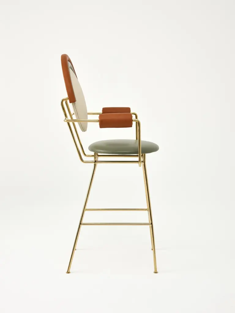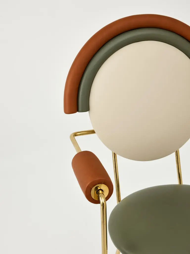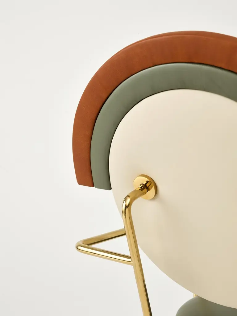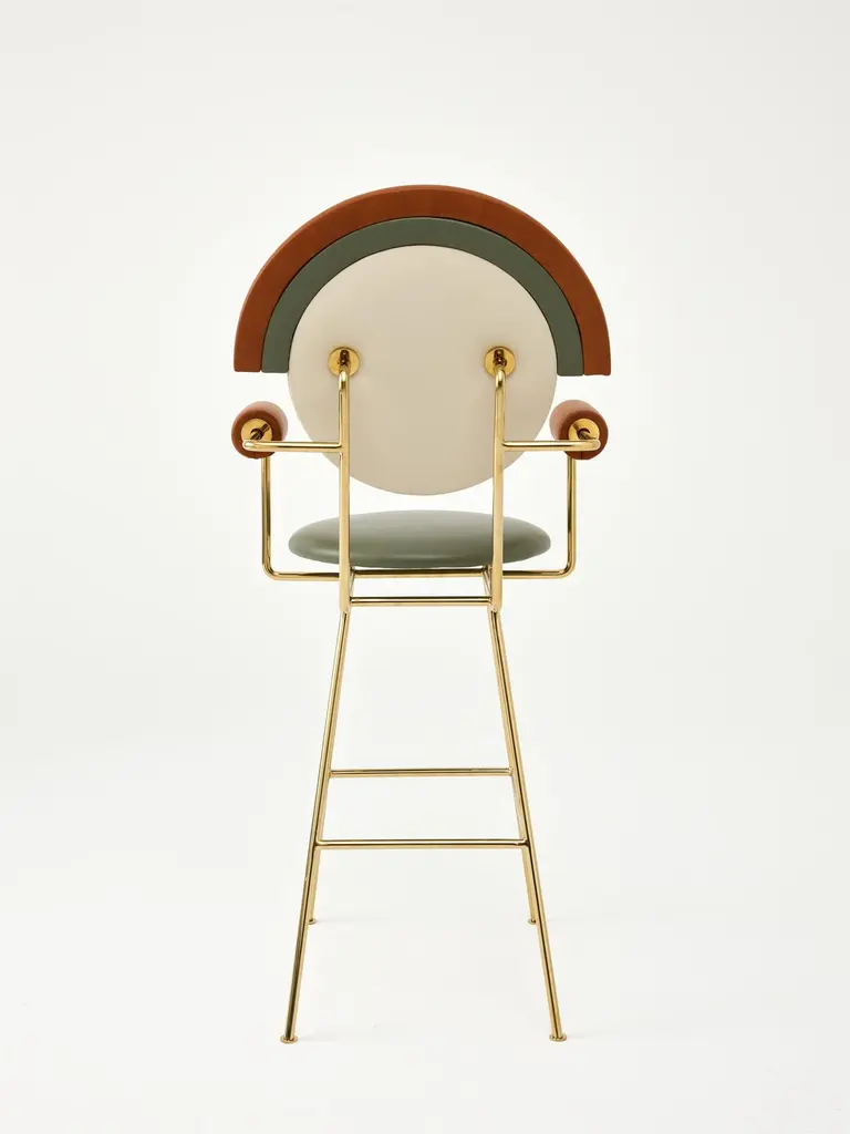 In Greek mythology, Iris is the personification of the rainbow and messenger of the gods. Inspired by this rainbow, it is a combination of layers and intentions. This minimal and elegant geometrical shaped bar stool can fit to any environment thanks to its contemporary attitude. Iris resembles a cartoon character with it's joyful colors and round shape. Adjustable back part comforts it's users every time they sit onto it and allow them to sit freely. It can come with arms or without arms and can be made in different heights.