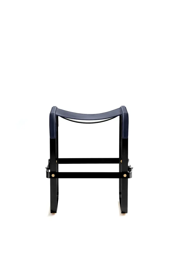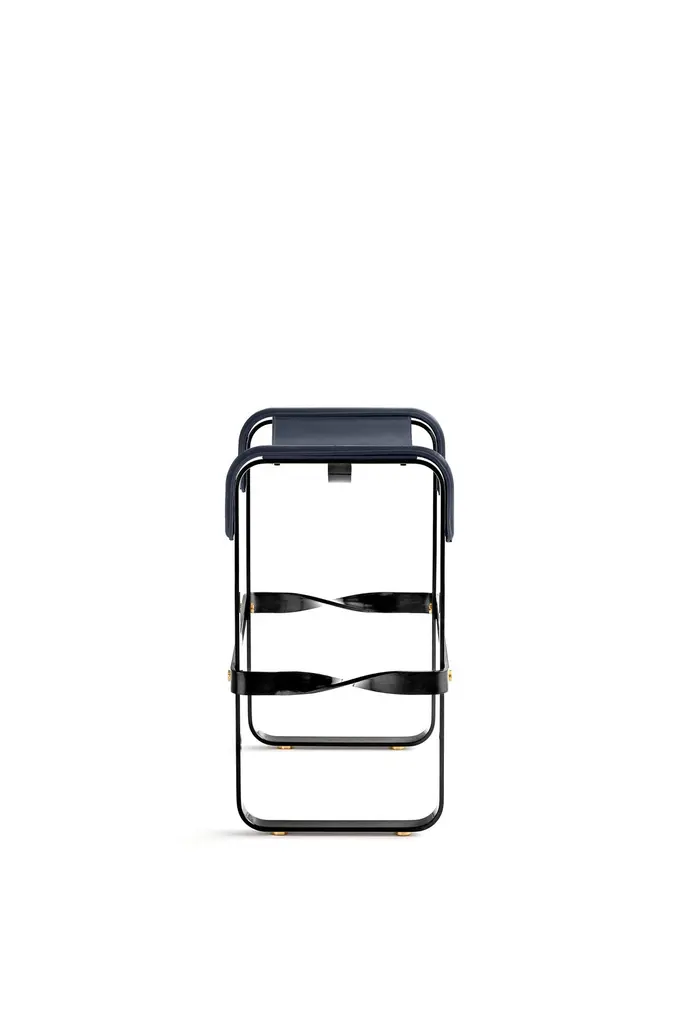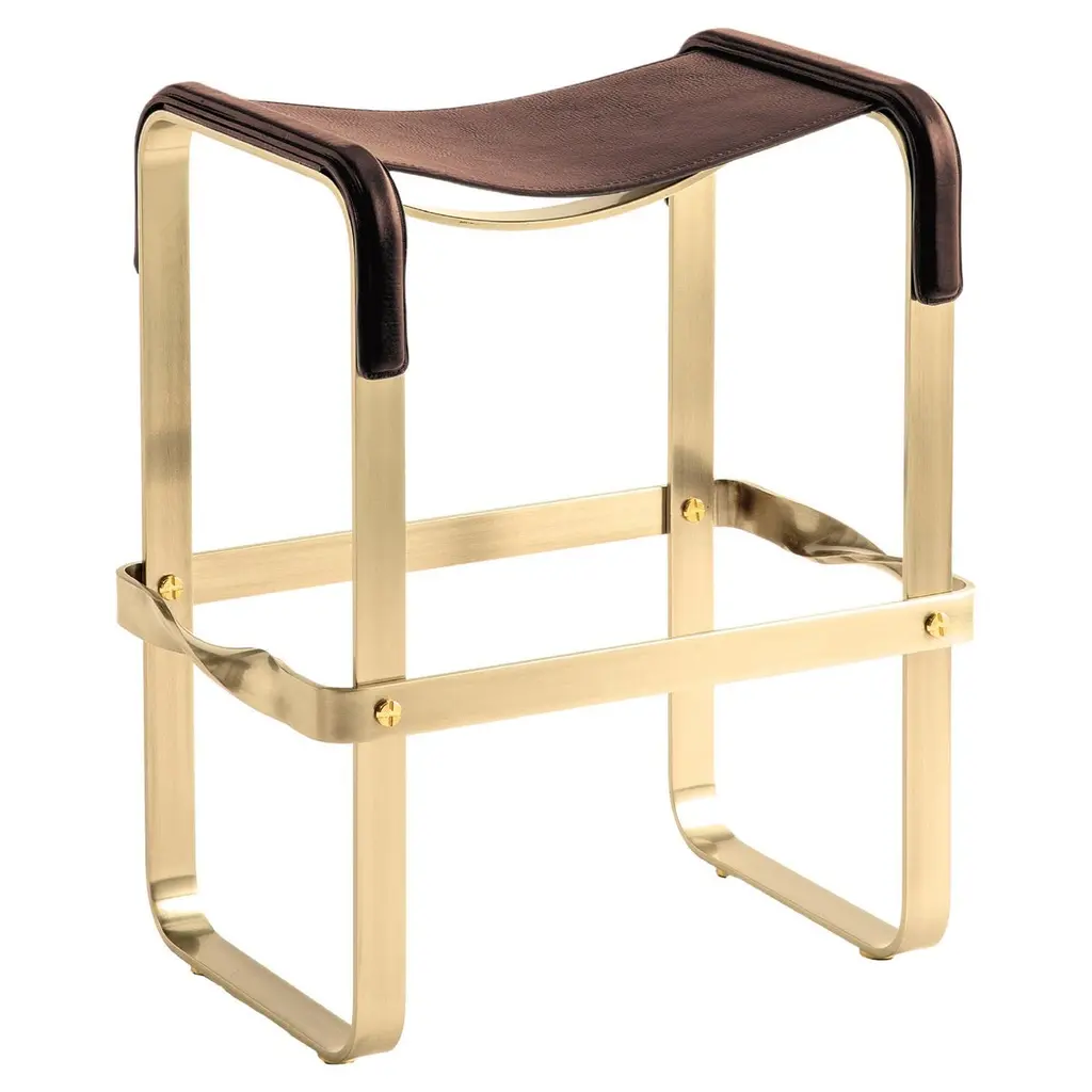 The Wanderlust contemporary counter stool belongs to a collection of minimalist and serene pieces where exclusivity and precision are shown in small details such as the hand-turned metal nuts and bolts that fix the leather surfaces, that go unnoticed at first sight.The robustness of the steel structure is combined with the delicacy of the rounded edges. The matte metal finishes evoke the passage of time and are complemented by vegetable tanned cowhide leathers that age gracefully with its use.The Wanderlust counter stool is designed and conceived as a tribute of Bauhaus tribute, the phrases "Less is more" and "God is in the detail" from the German American architect and industrial designer Mies van der Rohe, one of the pioneers of modernist architecture, define this collection.All pieces are done with cold bended steel rods, polished, nickel plated, colored by electrolysis, and lacquered. The process of polishing and lacquering the steel, goes through a manual and delicate chroming process, which gives its final and unique metal color finish. This precise technique gives a uniform metallic finish of minimum 50 microns over the entire Surface. Our metal finishing has successfully passed a corrosion resistance test in a salt spray chamber according to UNE-EN ISO 9227: 2017 and UNE-EN ISO 1456: 2010. Our signature screws are made with brass turning lathed, polished, and lacquered, these are the pieces that fix the saddle leather to the metal frame.Leathers are Spanish hides vegetable tanned. We use premium saddles in multiple colors to adjust to your taste and interior needs. This traditional vegetable dying and tanning method is an organic technique that relies on natural tannings from bark or plant tissues. The use of oils and natural fats give the leather a distinctive flexibility and texture, allowing it to be molded, retain its shape and age graciously.All skins are carefully selected from food industry sub-products, with a minimum thickness of 3.5 mm / 0,02 in, using the part of the animal's shoulder, which allows for larger pieces and uniformity, even though signature wrinkle from the animal’s neck may be recognizable. The vegetable tanning is a traditional and artisan treatment, which is respectful to the environment. Even with careful selection natural marks as a result of the contact with other animals, the age, origin and characteristics of the skin, or even the season in which the tanning takes place cannot be avoided. We still believe that these factors only add authenticity and uniqueness to every piece. Our leather parts are made with double saddles, always showing the top side of the hides that presents the better quality.Customization options.With the aim of creating customized pieces, clients can select from the various metal finishes, and leather colors to create pieces that complement their home décor. Leather colors available, black, navy, dark brown, cognac and natural tobacco, and steel polished finishing available, aged brass, black smoke and aged silver.Normally we use tone on tone threats for stitches, but client can select a contrast option, being possible to select any color to make a unique piece for the project it belongs. The finish on the edges of our leather components are sanded and hand painted. We have the option of select an alternative color if not tone on tone will be applied.Please consult in case you are interested on having a particular heat embossing stamp on the leather with your own branding.Our collections are made to full fill home spaces where to gather and enjoy great conversation with families and friends. Occasional furniture for exquisite homes, from cottages to exclusive resorts. Our product is understood as a sculptural piece of design, as an art object to be displayed at different house spaces as library, bar, living, foyer, bedroom, powder, meeting, grand or great room.The different finishes options make the furniture perfect combinations on diverse styles, from rustic mountain home, a small cottage, a ski lodge retreat, or industrial a minimalist look.