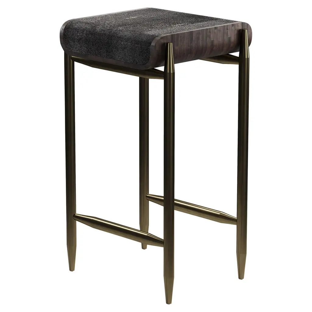 Contemporary Malicious Bar Stool With Polished Brass Studs And Black Leather