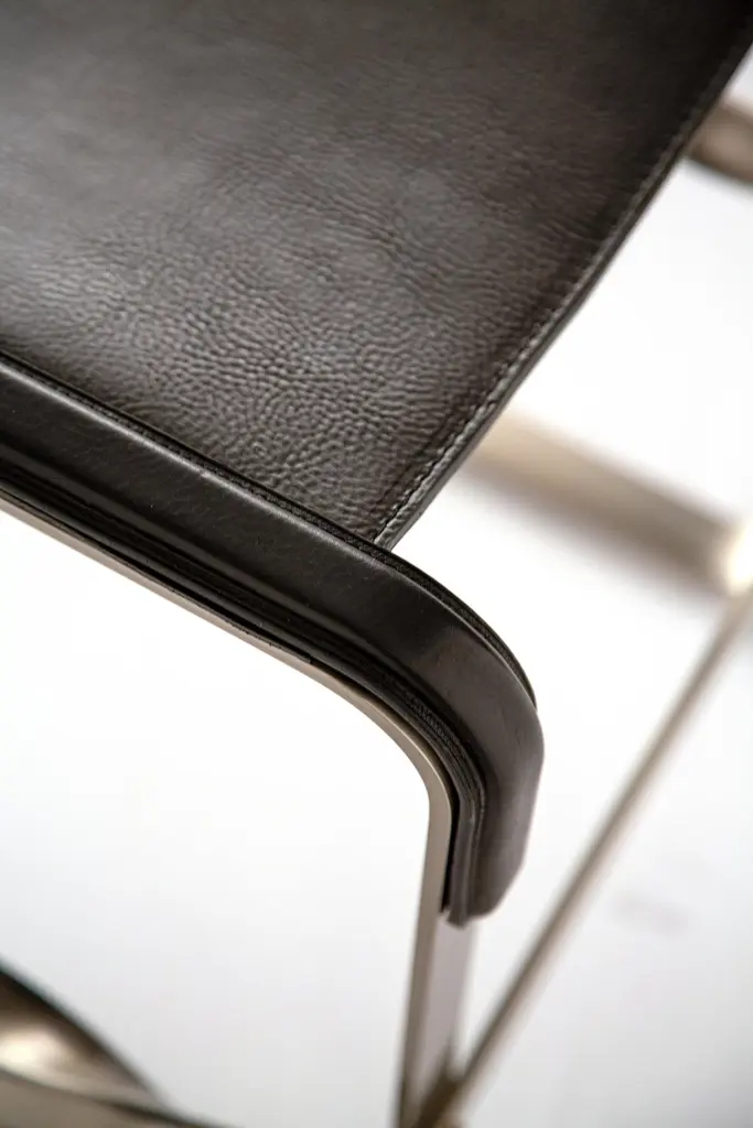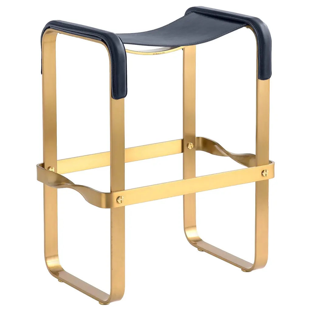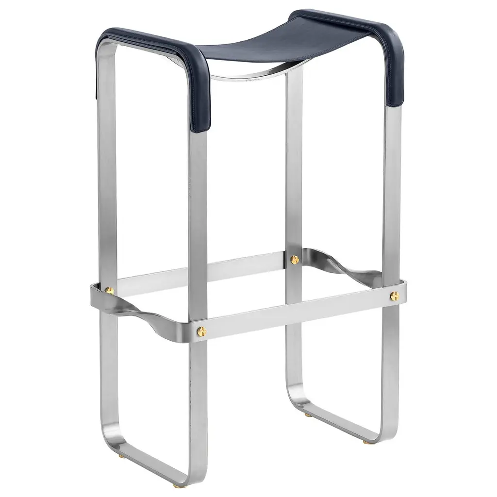 The Wanderlust contemporary counter stool belongs to a collection of minimalist and serene pieces where exclusivity and precision are shown in small details such as the hand-turned metal nuts and bolts that fix the leather surfaces, that go unnoticed at first sight.The robustness of the steel structure is combined with the delicacy of the rounded edges. The matte metal finishes evoke the passage of time and are complemented by vegetable tanned cowhide leathers that age gracefully with its use.The Wanderlust counter stool is designed and conceived as a tribute of Bauhaus tribute, the phrases "Less is more" and "God is in the detail" from the German American architect and industrial designer Mies van der Rohe, one of the pioneers of modernist architecture, define this collection.All pieces are done with cold bended steel rods, polished, nickel plated, colored by electrolysis, and lacquered. The process of polishing and lacquering the steel, goes through a manual and delicate chroming process, which gives its final and unique metal color finish. This precise technique gives a uniform metallic finish of minimum 50 microns over the entire Surface. Our metal finishing has successfully passed a corrosion resistance test in a salt spray chamber according to UNE-EN ISO 9227: 2017 and UNE-EN ISO 1456: 2010. Our signature screws are made with brass turning lathed, polished, and lacquered, these are the pieces that fix the saddle leather to the metal frame.Leathers are Spanish hides vegetable tanned. We use premium saddles in multiple colors to adjust to your taste and interior needs. This traditional vegetable dying and tanning method is an organic technique that relies on natural tannings from bark or plant tissues. The use of oils and natural fats give the leather a distinctive flexibility and texture, allowing it to be molded, retain its shape and age graciously.All skins are carefully selected from food industry sub-products, with a minimum thickness of 3.5 mm / 0,02 in, using the part of the animal's shoulder, which allows for larger pieces and uniformity, even though signature wrinkle from the animal’s neck may be recognizable. The vegetable tanning is a traditional and artisan treatment, which is respectful to the environment. Even with careful selection natural marks as a result of the contact with other animals, the age, origin and characteristics of the skin, or even the season in which the tanning takes place cannot be avoided. We still believe that these factors only add authenticity and uniqueness to every piece. Our leather parts are made with double saddles, always showing the top side of the hides that presents the better quality.Customization options.With the aim of creating customized pieces, clients can select from the various metal finishes, and leather colors to create pieces that complement their home décor. Leather colors available, black, navy, dark brown, cognac and natural tobacco, and steel polished finishing available, aged brass, black smoke and aged silver.Normally we use tone on tone threats for stitches, but client can select a contrast option, being possible to select any color to make a unique piece for the project it belongs. The finish on the edges of our leather components are sanded and hand painted. We have the option of select an alternative color if not tone on tone will be applied.Please consult in case you are interested on having a particular heat embossing stamp on the leather with your own branding.Our collections are made to full fill home spaces where to gather and enjoy great conversation with families and friends. Occasional furniture for exquisite homes, from cottages to exclusive resorts. Our product is understood as a sculptural piece of design, as an art object to be displayed at different house spaces as library, bar, living, foyer, bedroom, powder, meeting, grand or great room.The different finishes options make the furniture perfect combinations on diverse styles, from rustic mountain home, a small cottage, a ski lodge retreat, or industrial a minimalist look.