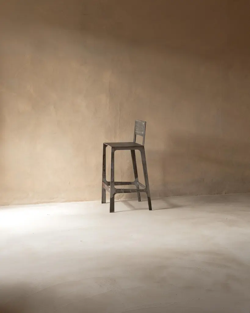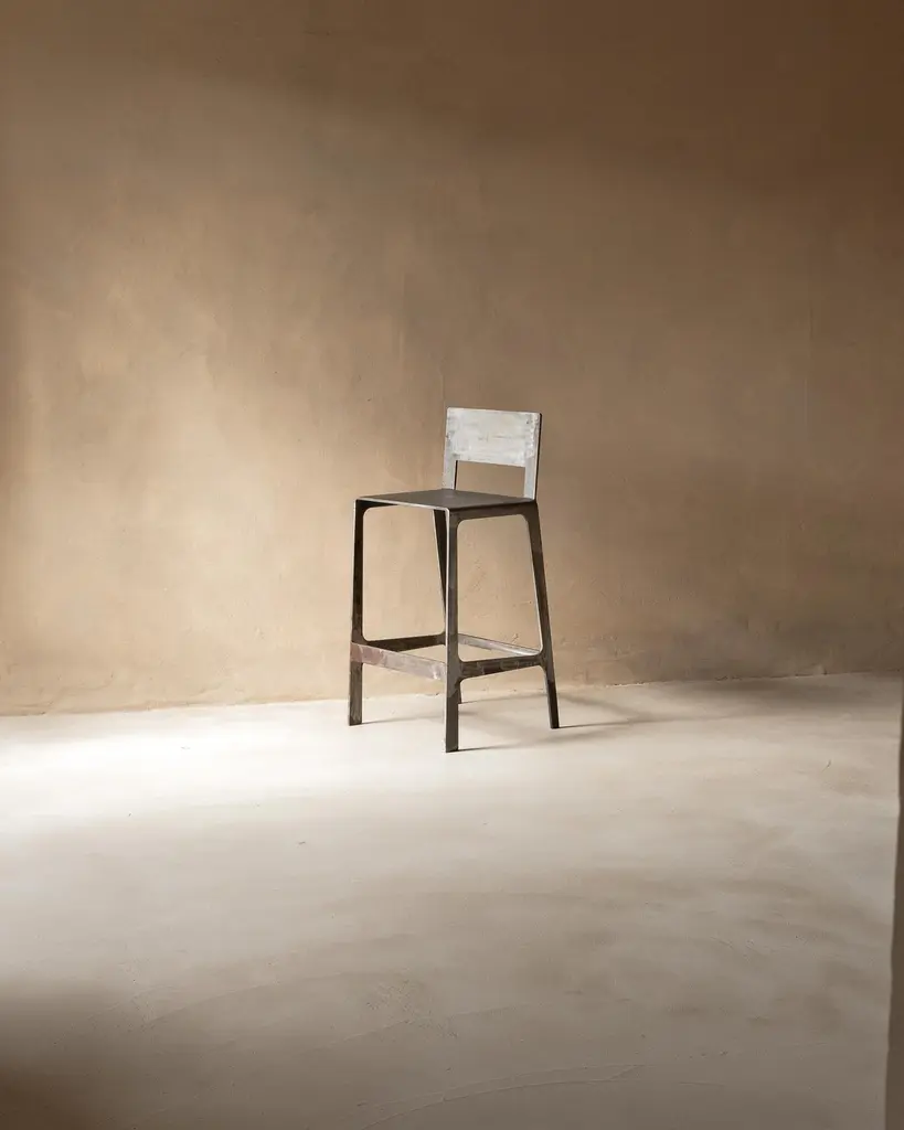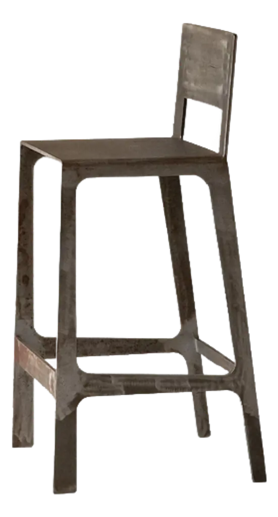 Patinated Steel Contemporary Forever Bar Stool With Backrest by Dennis KaiserDimensions: D 40 x W 35 x H 93 cm. SH: 68 cm.Materials: Steel.Handcrafted in Tuscany, Italy. Customization is available on request. Please contact us.This barstool is crafted from 8 mm-thick steel, showcasing smooth, rounded edges. Bent and welded into a single form, it develops a natural patina during the process, resulting in a warm yet sturdy presence despite its solid steel construction.Born in Belgium and based in Tuscany, Italy, since 2018, Dennis Kaiser creates furniture that seamlessly combines his roots in Belgian design with the artisanal traditions of Tuscany.Guided by a philosophy of durability and timelessness, Dennis Kaiser transforms raw materials into soulful objects. Each piece is carefully designed and expertly handcrafted in Tuscany, Italy, using locally sourced materials, ensuring that every creation tells a unique story and supports the region’s artisanal heritage and traditional practices.The process of shaping raw materials into sculptural forms by hand gives each piece a unique character.Dennis Kaiser is a multidisciplinary design studio, continually evolving its artistic vision through an expanding collection of furniture and objects.