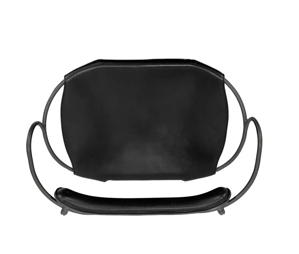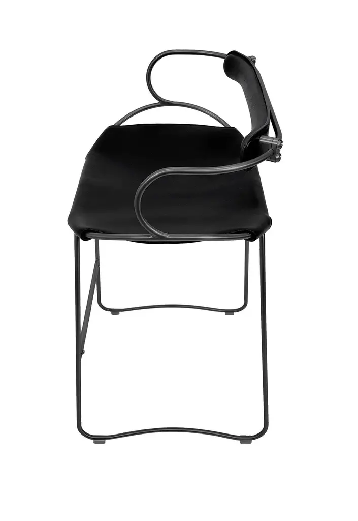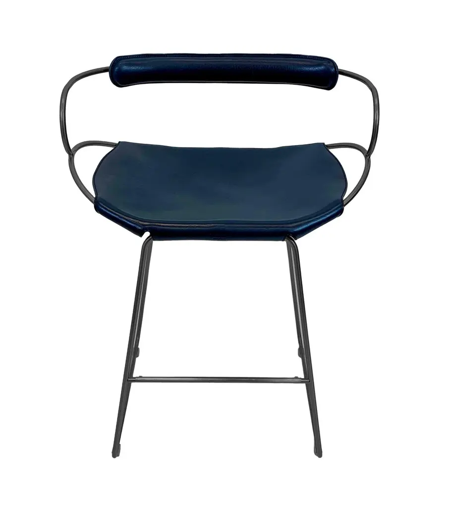 The Hug contemporary barstool with backrest is designed and conceived with a light aesthetic, the slight oscillation of the steel rod of 12 mm is complemented by the flexibility of the double 3.5 mm thick leather. When sitting in this furniture you feel an enveloping sensation, like being hugged, since the weight of the body is distributed evenly. Each unit becomes a refuge of visual and ergonomic wellbeing.Our Hug Collection is inspired by the organic lines of a landscape, the curves of nature, and the imaginary silhouette of the wind inspire this collection of organic forms, almost like metallic sculptures. All pieces are done with cold bended steel rods, polished, nickel plated, colored by electrolysis, and lacquered. The process of polishing and lacquering the steel, goes through a manual and delicate chroming process, which gives its final and unique metal color finish. This precise technique gives a uniform metallic finish of minimum 50 microns over the entire Surface. Our metal finishing has successfully passed a corrosion resistance test in a salt spray chamber according to UNE-EN ISO 9227: 2017 and UNE-EN ISO 1456: 2010. Our signature screws are made with brass turning lathed, polished, and lacquered, these are the pieces that fix the saddle leather to the metal frame.Leathers are Spanish hides vegetable tanned. We use premium saddles in multiple colors to adjust to your taste and interior needs. This traditional vegetable dying and tanning method is an organic technique that relies on natural tannings from bark or plant tissues. The use of oils and natural fats give the leather a distinctive flexibility and texture, allowing it to be molded, retain its shape and age graciously.All skins are carefully selected from food industry, with a minimum thickness of 3.5 mm / 0,02 in, using the part of the animal's shoulder, which allows for larger pieces and uniformity, even though signature wrinkle from the animal’s neck may be recognizable. The vegetable tanning is a traditional and artisan treatment, which is respectful to the environment. Even with careful selection natural marks as a result of the contact with other animals, the age, origin and characteristics of the skin, or even the season in which the tanning takes place cannot be avoided. We still believe that these factors only add authenticity and uniqueness to every piece. Our leather parts are made with double saddles, always showing the top side of the hides that presents the better quality.Customization options.With the aim of creating customized pieces, clients can select from the various metal finishes, and leather colors to create pieces that complement their home décor. Leather colors available, black, navy, dark brown, cognac and natural tobacco, and steel polished finishing available, aged brass, black smoke and aged silver.Normally we use tone on tone threats for stitches, but client can select a contrast option, being possible to select any color to make a unique piece for the project it belongs. The finish on the edges of our leather components are sanded and hand painted. We have the option of select an alternative color if not tone on tone will be applied.Please consult in case you are interested on having a particular heat embossing stamp on the leather with your own branding.Our collections are made to full fill home spaces where to gather and enjoy great conversation with families and friends. Occasional furniture for exquisite homes, from cottages to exclusive resorts. Our product is understood as a sculptural piece of design, as an art object to be displayed at different house spaces as library, bar, living, foyer, bedroom, powder, meeting, grand or great room.The different finishes options make the furniture perfect combinations on diverse styles, from rustic mountain home, a small cottage, a ski lodge retreat, or industrial a minimalist look.