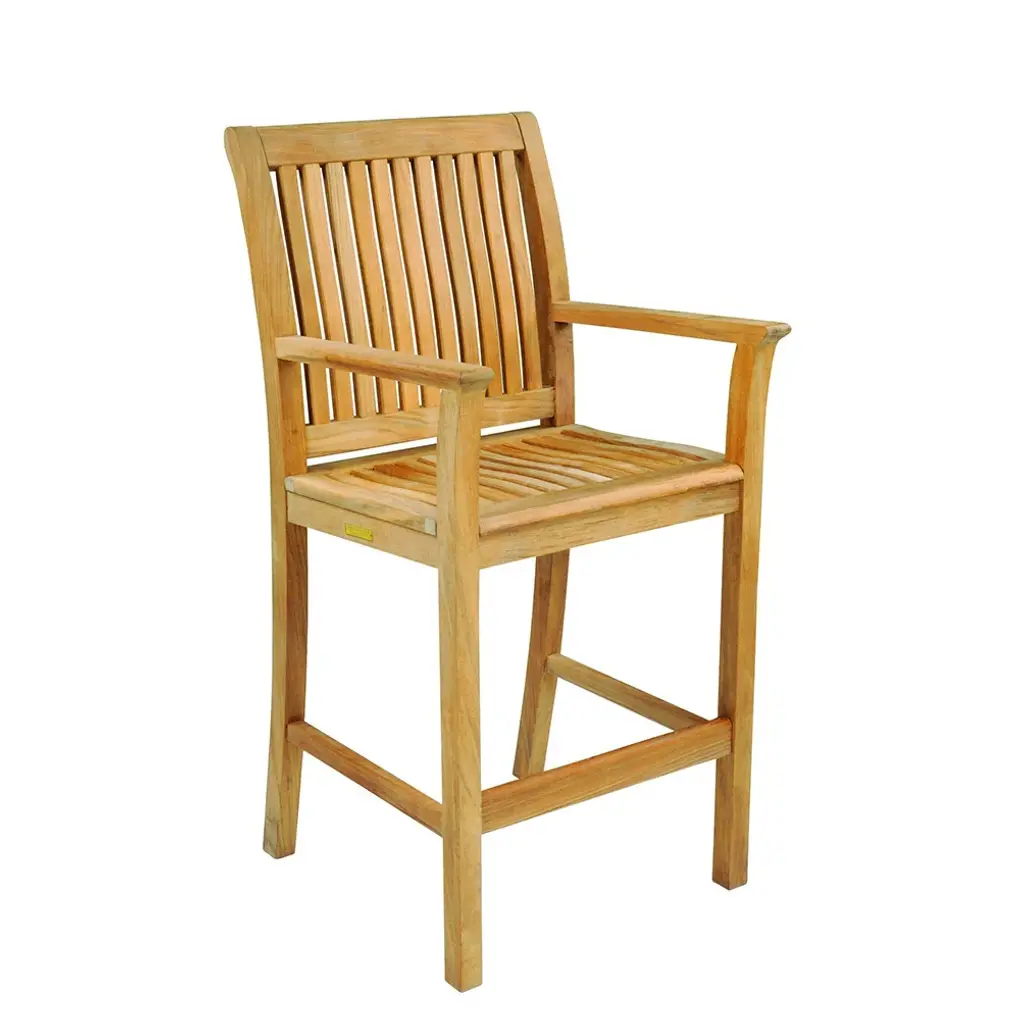 Enhance your outdoor entertainment area with this wooden bar stool. Delicately made of natural teak wood, the bar chair shows perfect performance in lasting durability and great weight capacity. Moreover, the natural wood finish not only adds a stylish look but also perfect for year-round use. The sitting comfort matters a lot, and that’s why it adopts ideal height, inclined backrest and armrests. In addition, a conveniently placed footrest provides added support and stability, ensuring a comfortable seating experience. Designed to blend seamlessly with any outdoor setting, this counter-height chair offers a comfortable retreat in your backyard, garden, balcony, or poolside. FeatureTeak wood bar stool is built to last and ensures reliable support Natural material means better durability and high strength Ergonomic backrest perfect fits your body curve and relieves fatigue Experience unmatched comfort with integrated armrests Considerate footrest allows you rest in a relaxing posture Slatted design promotes air circulation when used outdoors Smooth painted surface presents long service life Extra support bar and crafted details boast a reliable structure Protective foot pads enhance overall stability and prevent scratches Suitable for bar tables or kitchen counters ranging from 42" to 43" Natural wood finish adds a touch of sophistication to your outdoor spaces Please put the bar chair away in rainy days for longer service lifeSpecificationColor: Natural Material: Teak Wood Product Size: 23" x 24" x 46.5" (L x W x H) Backrest Size: 19.5" x 19.5"(L x W) Seat Size: 19" x 19.5" (L x W) Seat Height: 27" Height from Armrests to Ground: 36" Footrest Height: 10.5" Net Weight of Each Bar Stool: 20 lbs Weight Capacity of Each Bar Stool: 330 lbs Recommended Table Height: 42"-43" Package Includes: 1 x Bar Stool 1 x Instruction