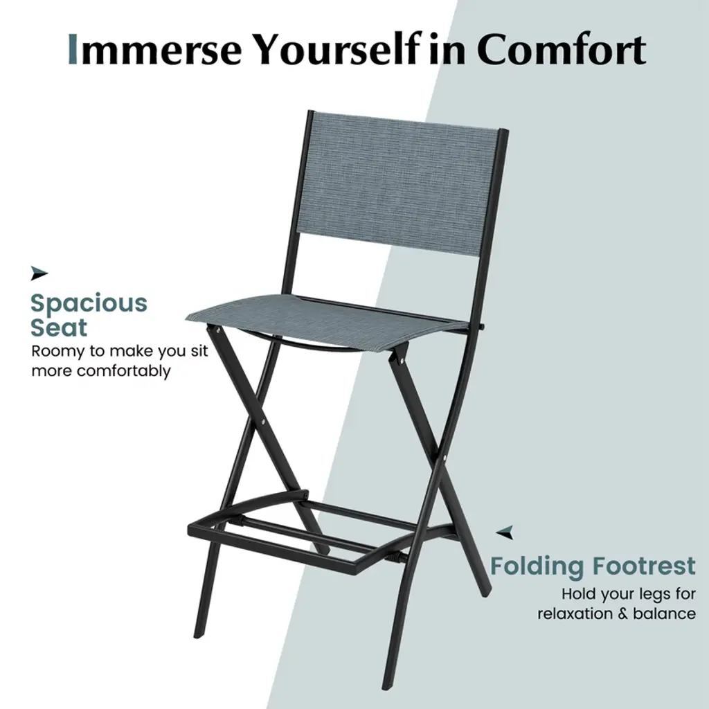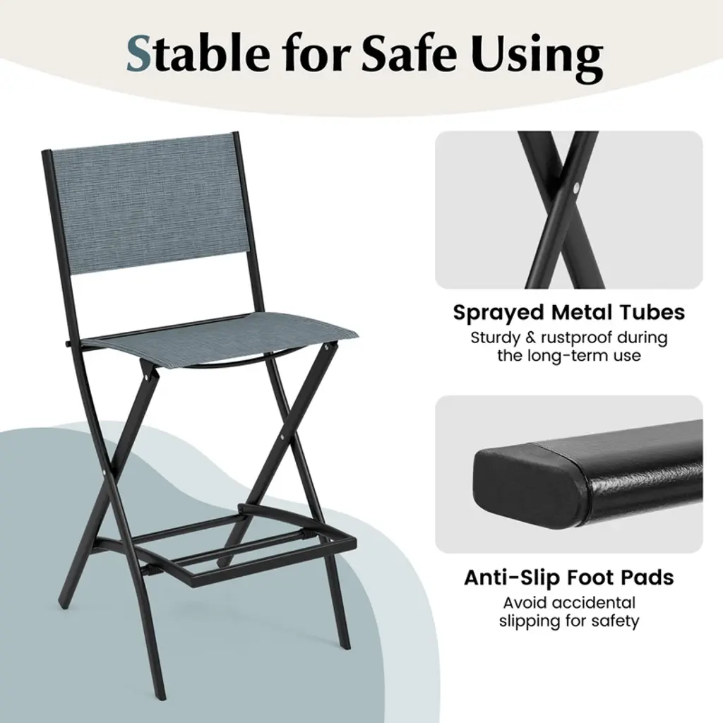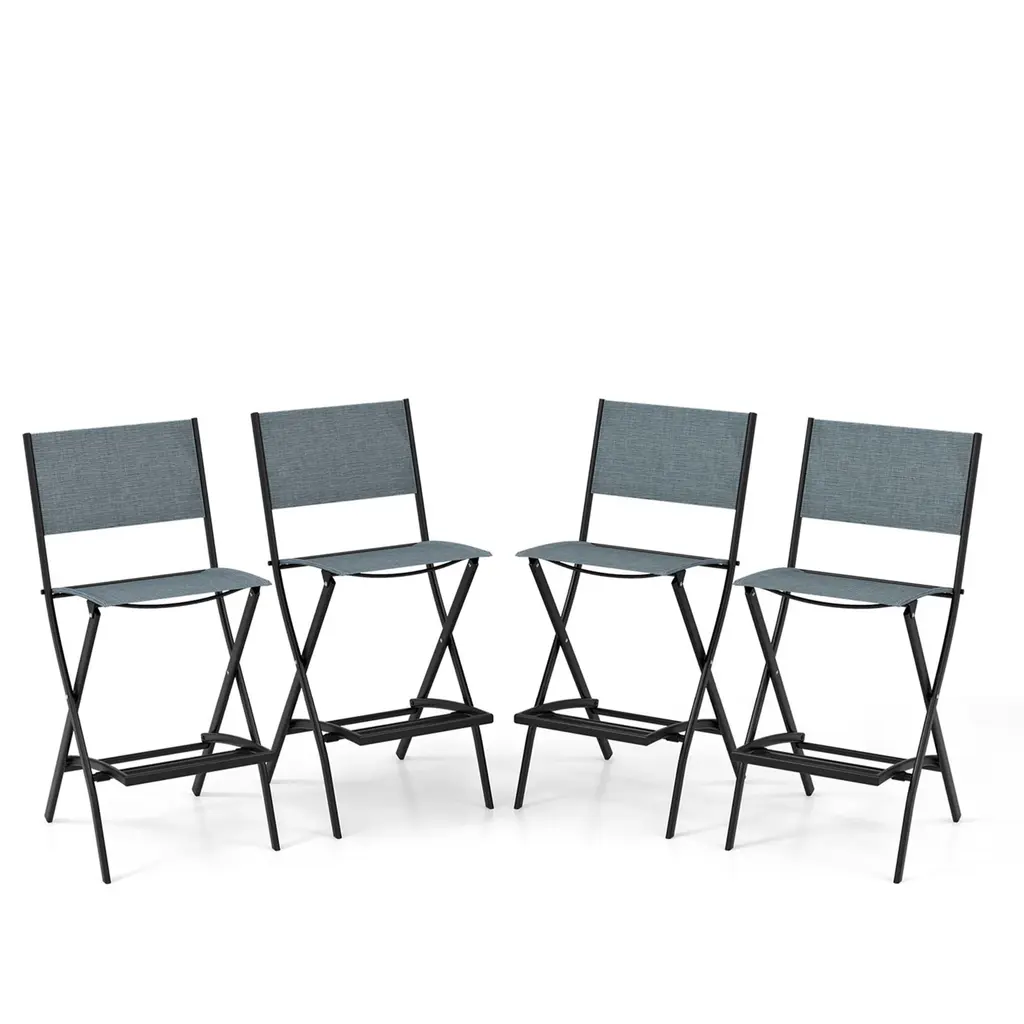 Costway Set Of 4 Outdoor Bar Chair Folding Bar Height Stool With Metal Frame Blue
