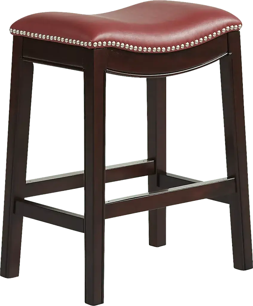 A leather upholstered seat is fitted over shaped seat rails that are raised by splayed tapering legs joined by stretchers