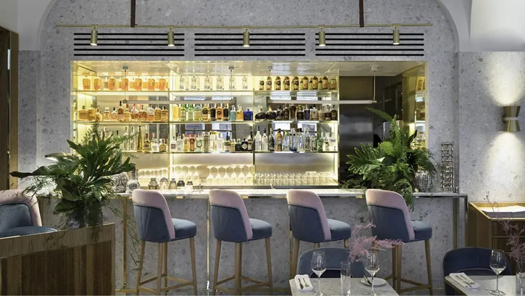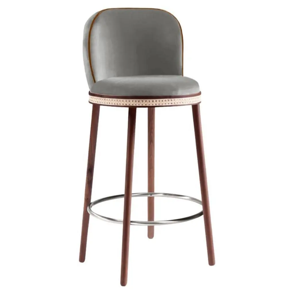 Counter Chair Frida Alumminum In Solid Wood, Brass And Upholstery New