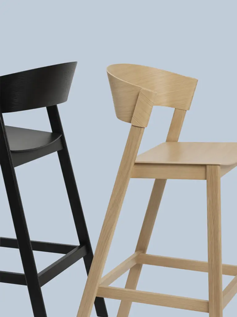 With its curved backrest that folds elegantly around its back legs and ties the design together, the Cover Bar Stool challenges the possibilities of veneer through a forward-thinking approach, echoing the ideas of Scandinavian design. The design is lightweight and features a tall, enveloping back for extensive comfort that allows one to be seated in its seat for hours on end, be it for a dinner, a drink or even working at a counter desk. The Cover Series without upholstery is EU Ecolabel Certified. By carrying the EU Ecolabel Certification, the product is guaranteed to have a reduced environmental impact throughout the total lifecycle of the product from raw material to disposal.
