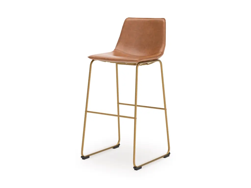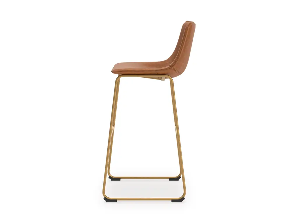 Dine in casual contemporary fashion with the Crandox bar height bar stool. A retro-inspired bucket design gives it a mid-century vibe. Sleek faux leather and a luxe goldtone frame bring the look right into the present. And with a contoured seat for your comfort, it dishes out style and convenience all in one.