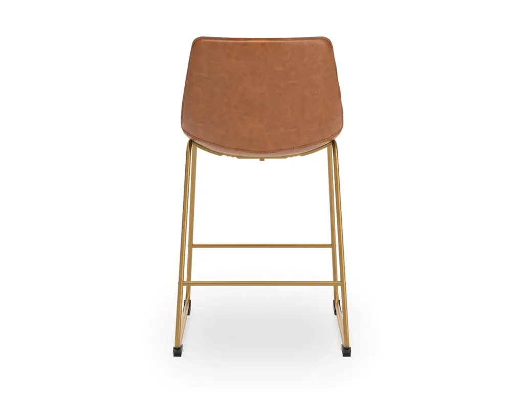 Dine in casual contemporary fashion with the Crandox counter height bar stool. A retro-inspired bucket design gives it a mid-century vibe. Sleek faux leather and a luxe goldtone frame bring the look right into the present. And with a contoured seat for your comfort, it dishes out style and convenience all in one.