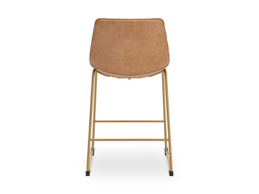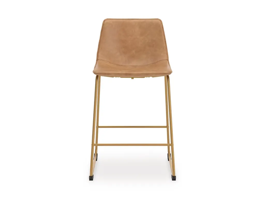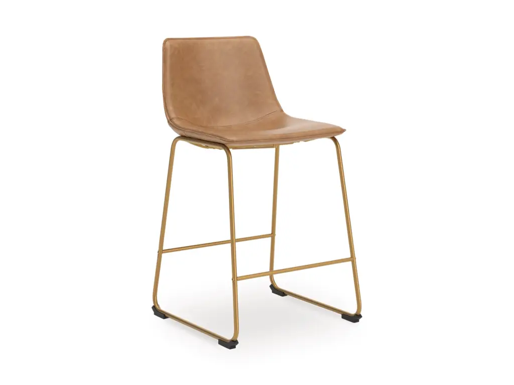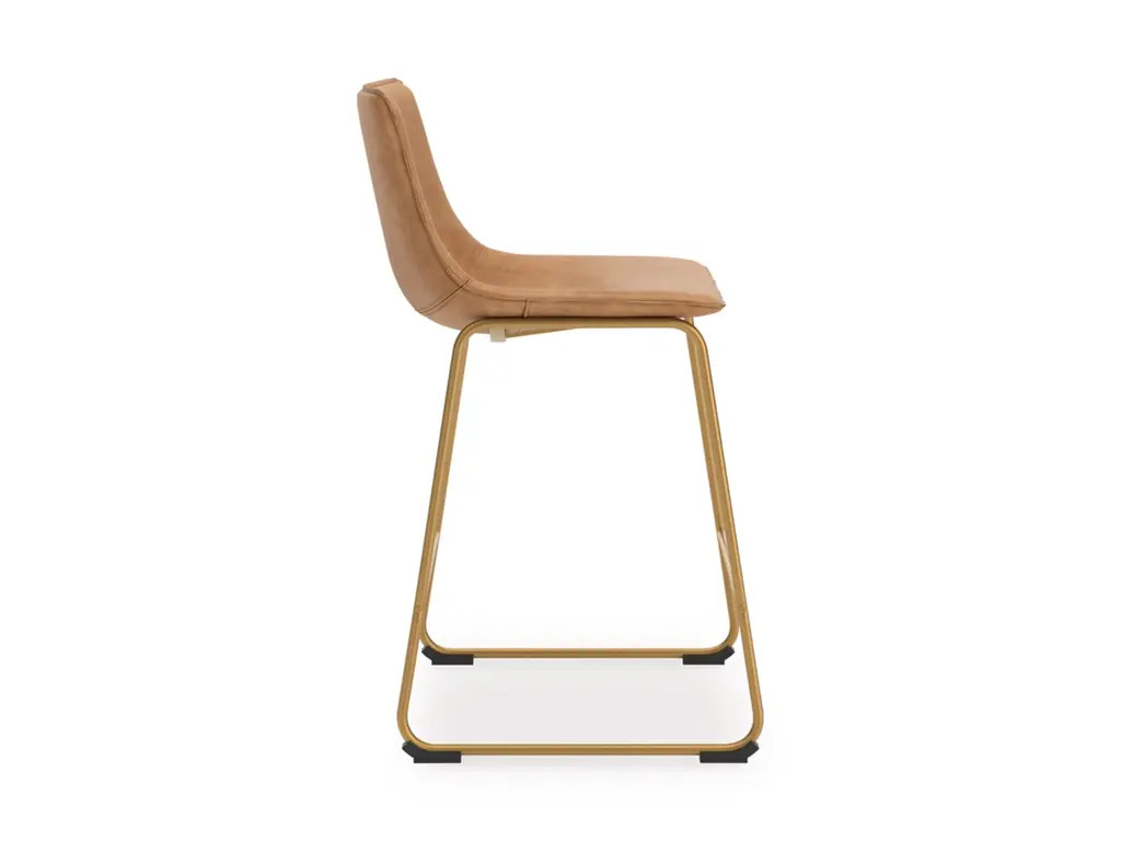 Dine in casual contemporary fashion with the Crandox counter height bar stool. A retro-inspired bucket design gives it a mid-century vibe. Sleek faux leather and a luxe goldtone frame bring the look right into the present. And with a contoured seat for your comfort, it dishes out style and convenience all in one.