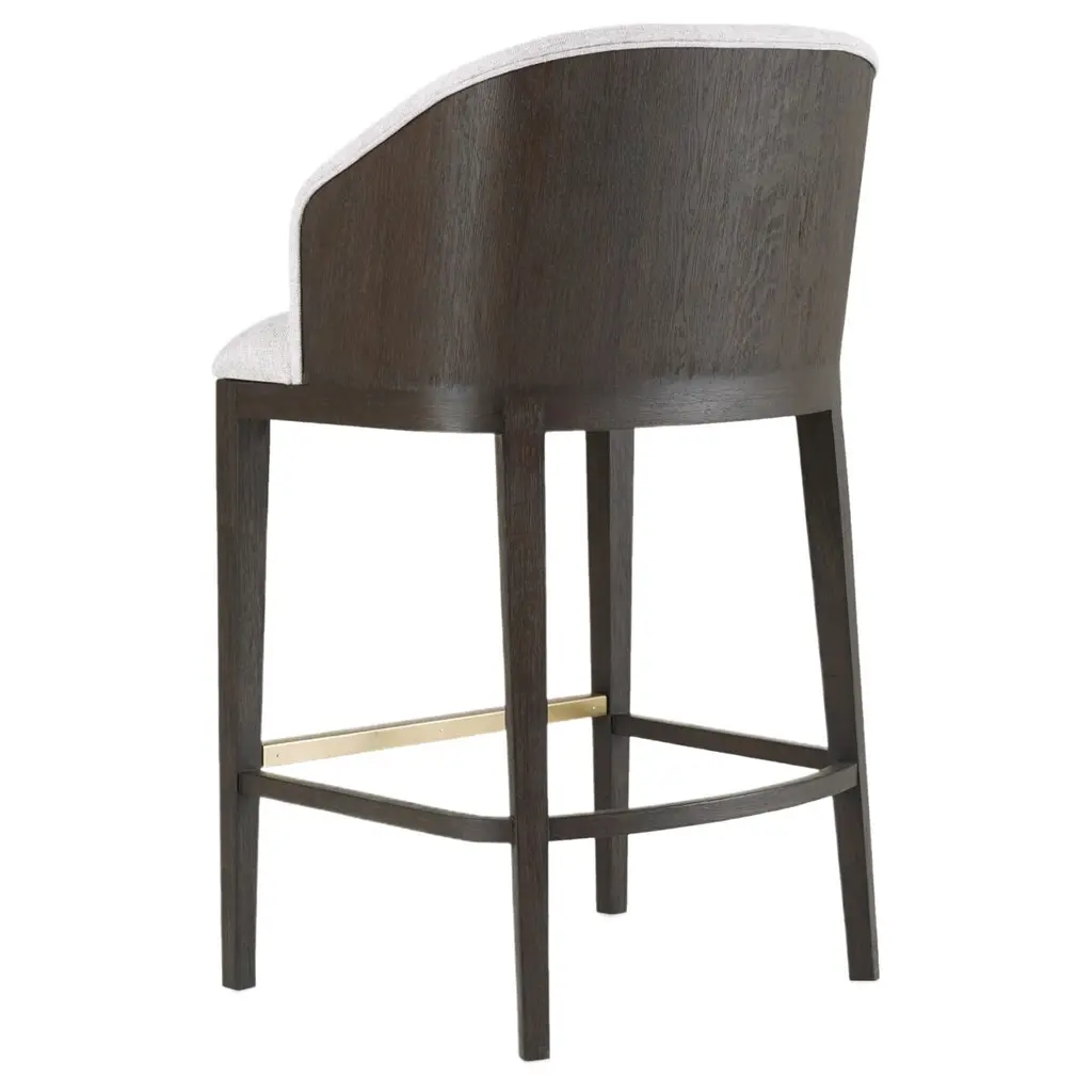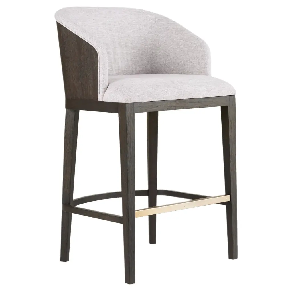 Chic and modern with an eclectic mix of a fabric upholstered seat and inside back, wood on the outside back, and a metal foot rail, the Curata Bar Stool is comfy and inviting. Its design exudes a sophisticated charm, making it a perfect addition to any contemporary space.