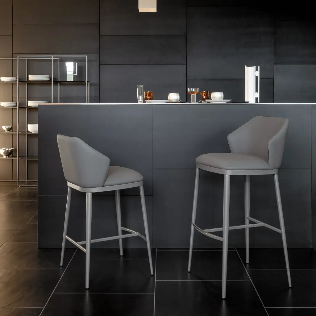 The Mida collection is named after the mythical King Midas who turned everything he touched into gold. Similarly, Mida seating adds a touch of style to any space, featuring a backrest with a generous, enveloping shape and a metal base that gives the structure a harmonious design. The soft padding of the seat and backrest, combined with the exquisite upholstery offered by Bonaldo, make Mida the ideal element to position in a living area, around a table or in the Mida too stool version, in front of a bar top. The Mida modern high back chair design collection includes a chair (Mida), a chair with armrests (Miss Mida), a version with a wider seat (Mida large) and a stool (Mida too) in two different heights.