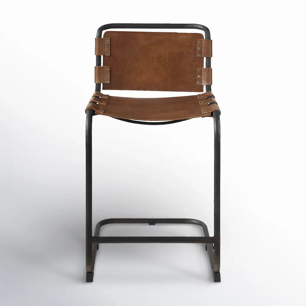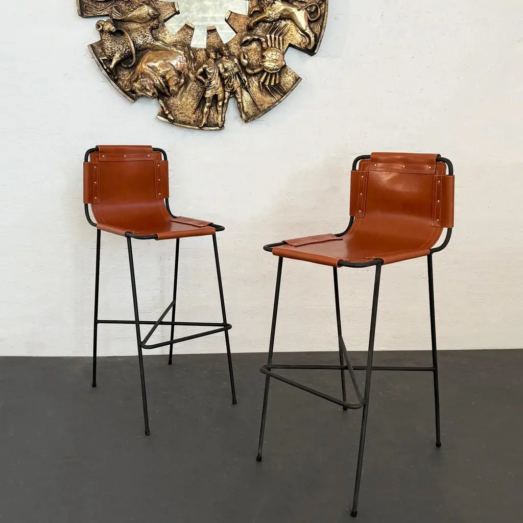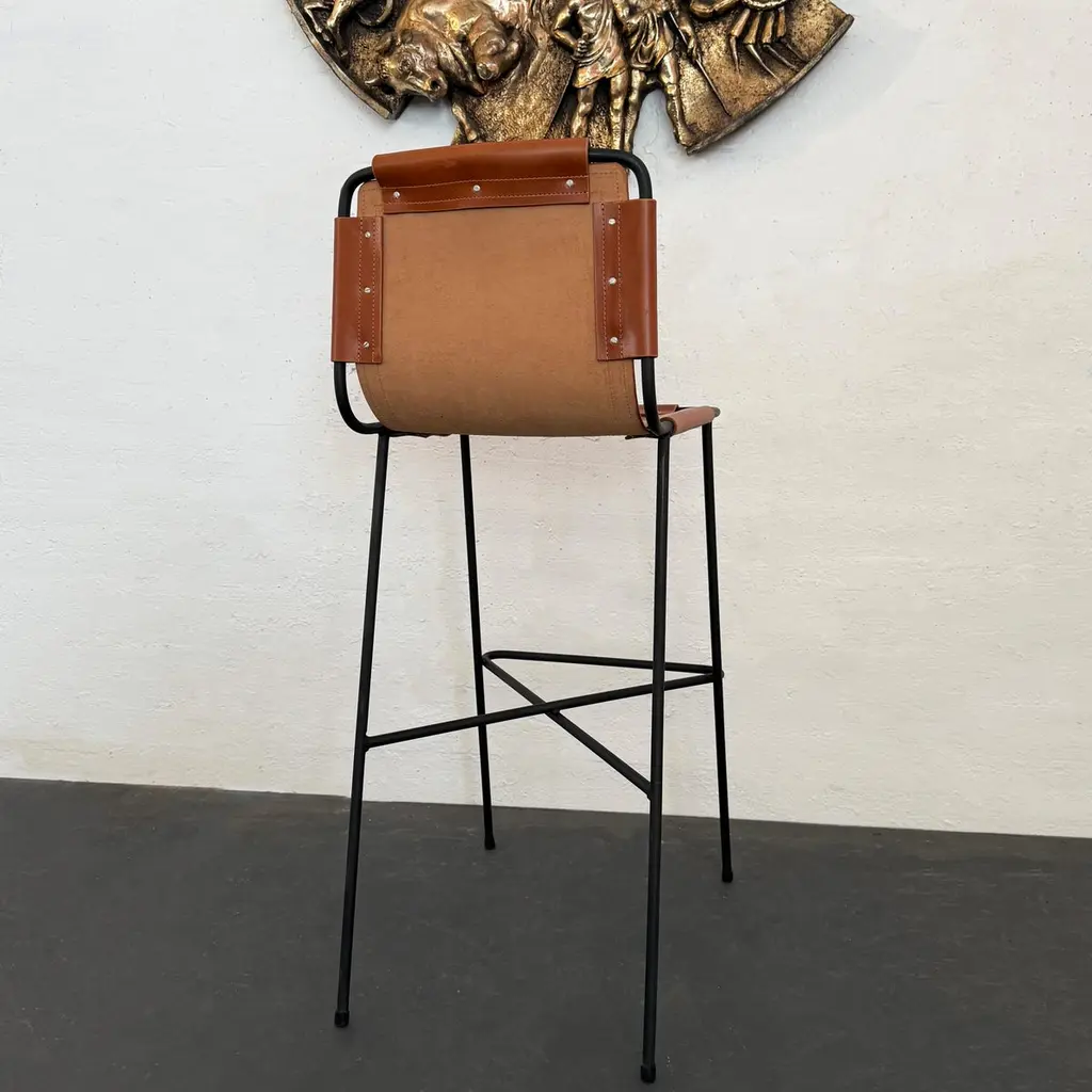 Custom Industrial Leather And Wrought Iron Bar Stool