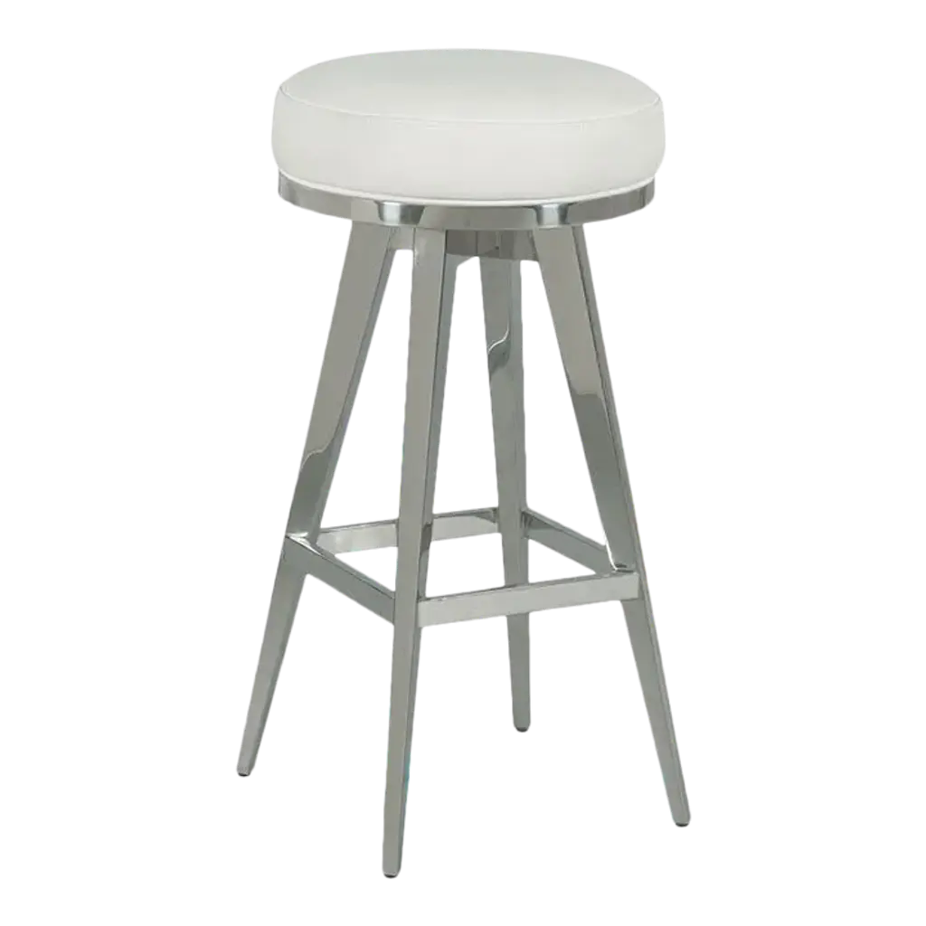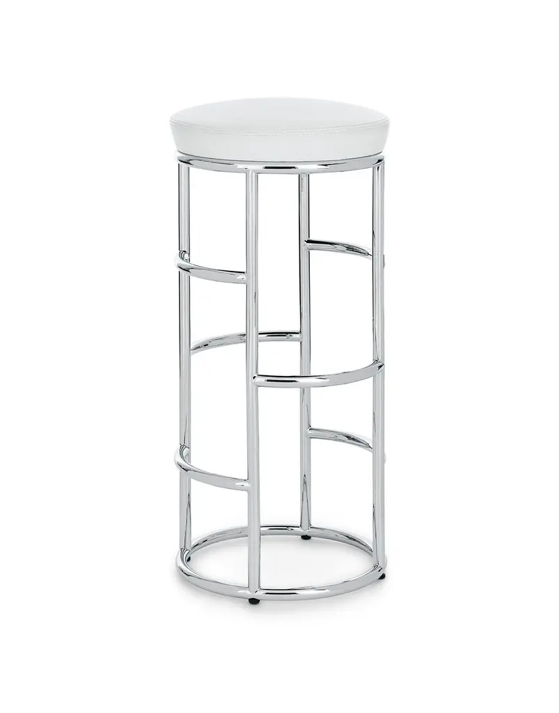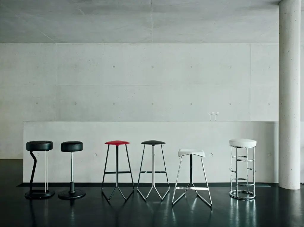 The palace of Maharajah Shri Yeshwant Rao Holkar Bahadur was located in far-away India, yet it was equipped with the latest in modern finesse from a western lifestyle. This included a billiard room and a bar in an avant-garde style where the walls shimmered blue and silver and stainless steel, lacquer and leather were the dominating materials. The bar stool designed by Eckart Muthesius for this place is even today, nearly 80 years later, a fascinating and individual design and could be placed in any stylish bar. A true modern classic never dies. Frame of chromium-plated steel tubing. Upholstery: Polyurethane with quilting cotton on a beech frame. Cover in leather. Dimensions: W 36 cm, H 76 cm. Leather: Classic.