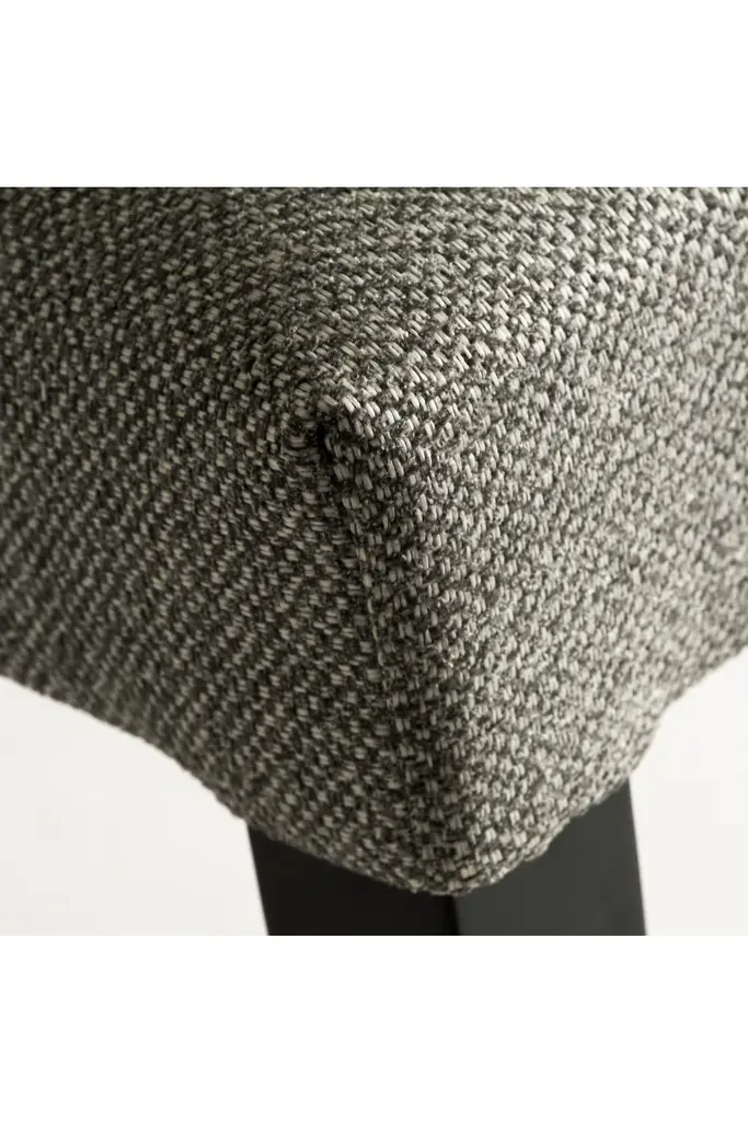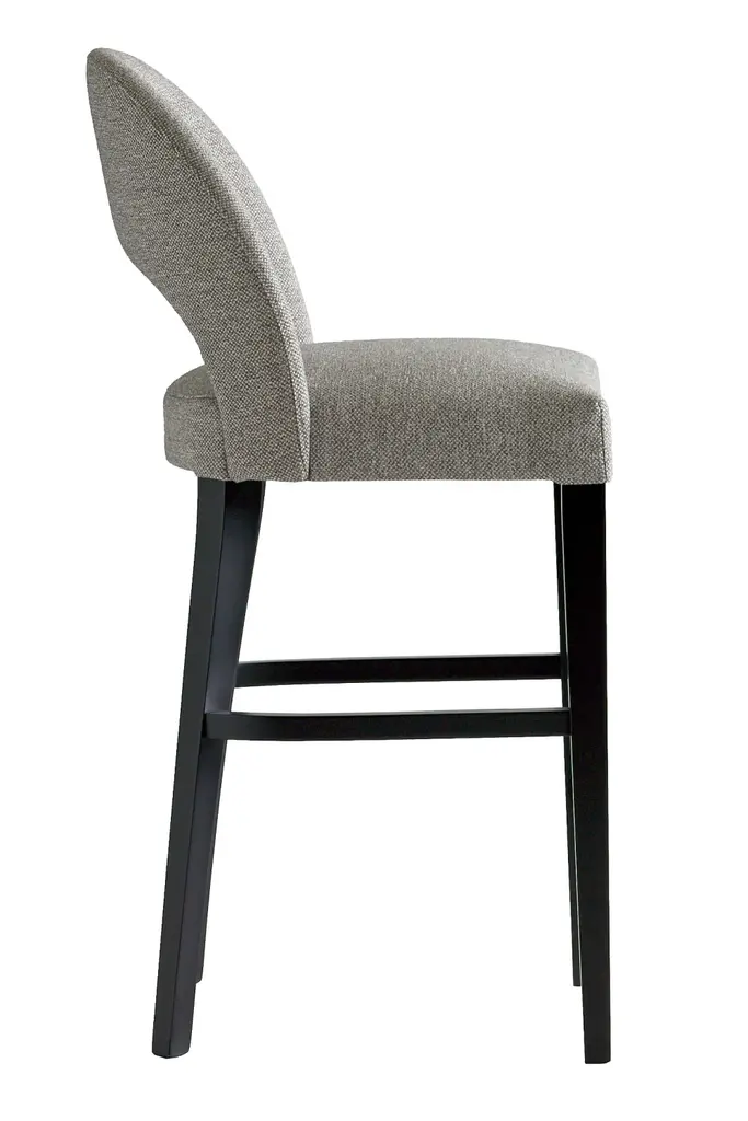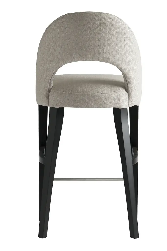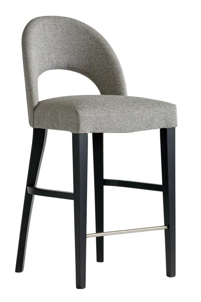 This sleek bar stool is given a modern silhouette thanks to its curved back with a semi-circular cutout. The matte black legs feature a useful metal footrest for additional comfort. The padded seat and back are upholstered in our textured fabric with a stain-resistant finish using AquaClean technology, making this an elegant and practical piece for your kitchen area.
