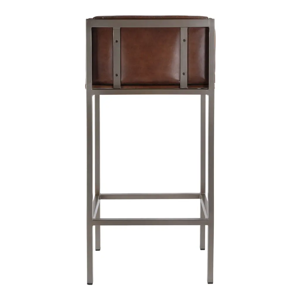 Transform your space with the Damaris 31 in. Seat Height Leather and Iron Accent Stool with Low Back, a sophisticated piece that combines style and comfort in perfect harmony. Standing at 38 inches tall, it features a genuine leather seat and backrest, generously filled with foam for a plush seating experience. The sleek iron frame adds a touch of industrial elegance, while the integrated arms, backrest, and footrest ensure a relaxed and supportive sit. Designed to blend function with flair, this stool makes a chic addition to dining areas, bars, or any modern living space. Envision its use in commercial settings like pubs, boutiques, or restaurants.