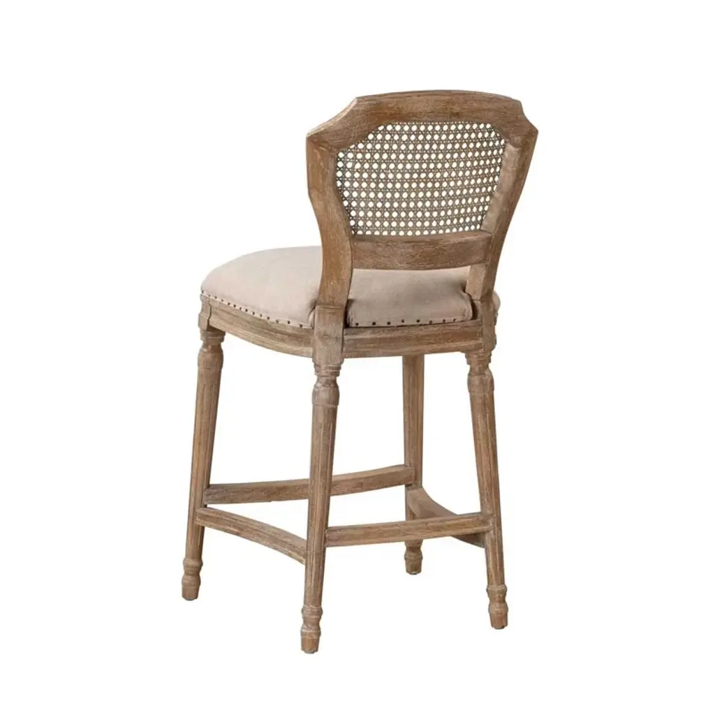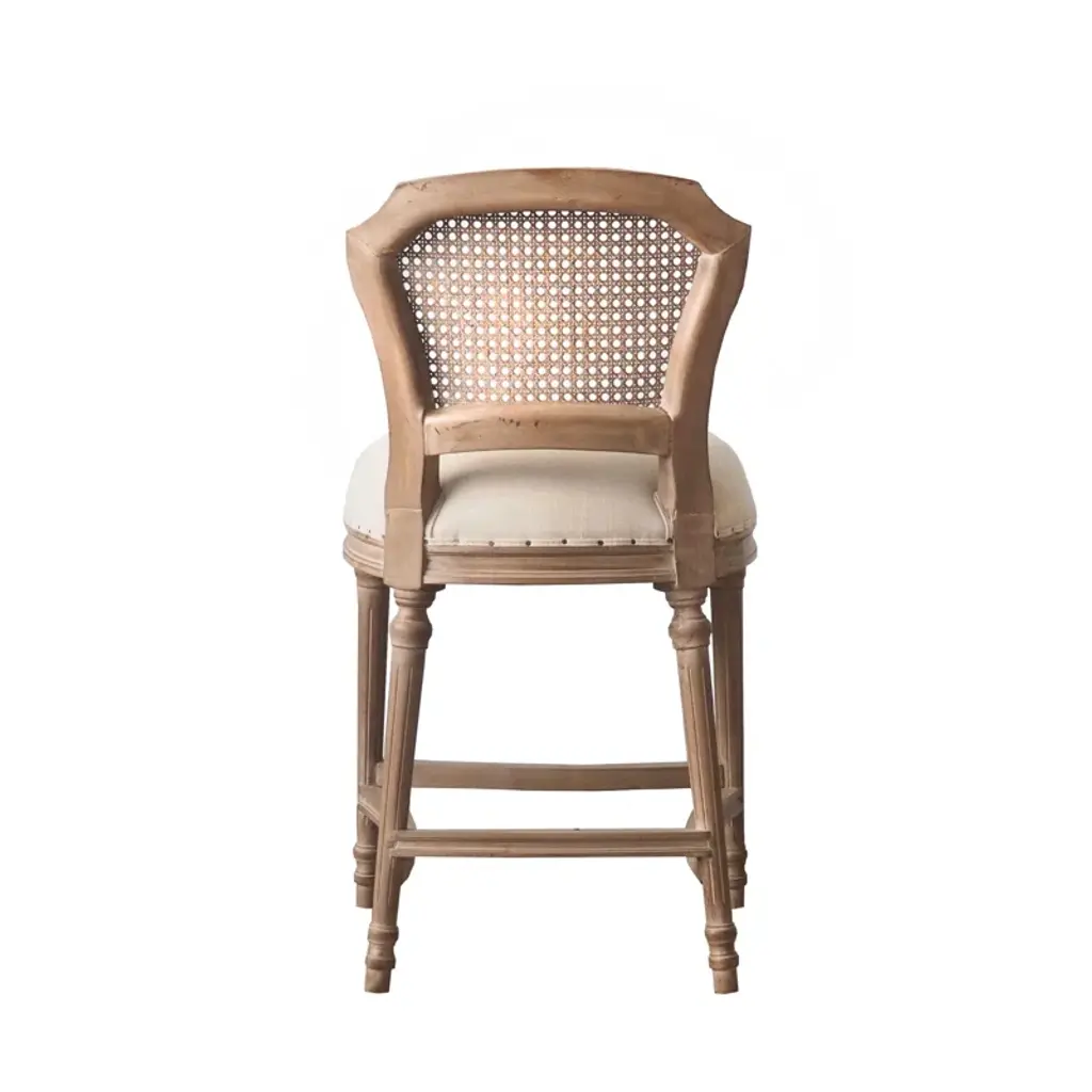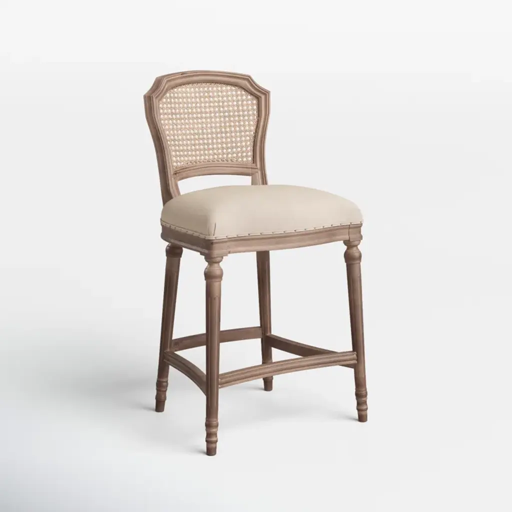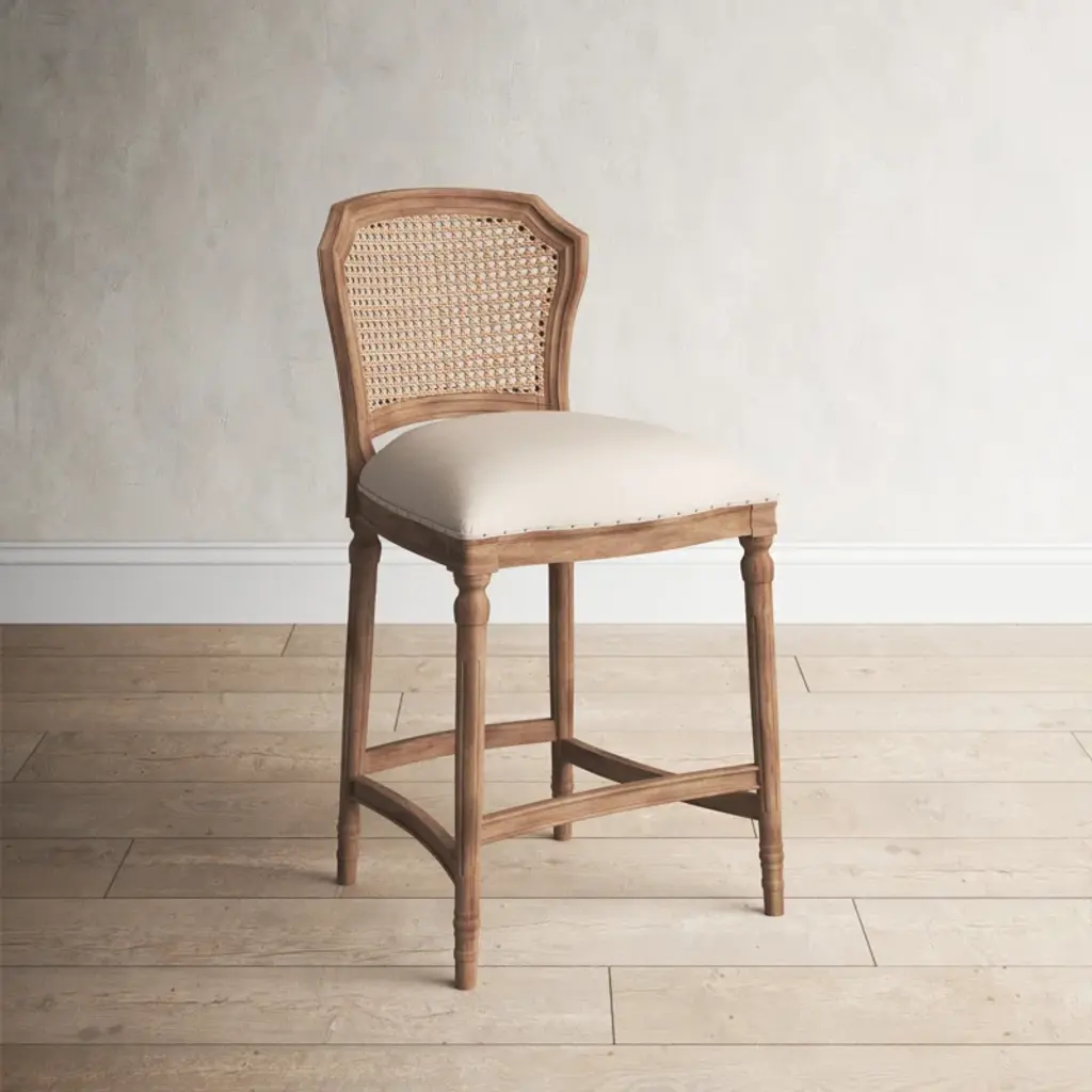 This upholstered bar and bar stool has a coastal-inspired rattan design that's right at home in any farmhouse kitchen or breakfast nook. Its seat is upholstered in family-friendly fabric that's dotted with nailhead trim, and its perforated back is made from wicker/rattan. We love how its fluted legs and solid wood frame are extra sturdy, plus it has a built-in footrest for added comfort. Plus, we love that its full-back design lets you sit back while you enjoy a homecooked meal. And the best part of all? This bar stool arrives fully assembled, so no need to grab the screwdriver.