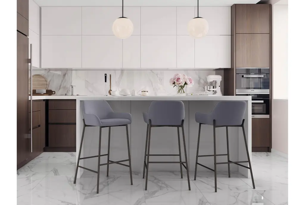 Enhance your kitchen or dining area with the Danny Black And Grey Faux Leather Bar Stool Set Of 2. These modern bar stools feature a sleek design with a contemporary flair, perfect for any stylish home. The padded seat and backrest provide exceptional comfort, making them ideal for long conversations and gatherings.