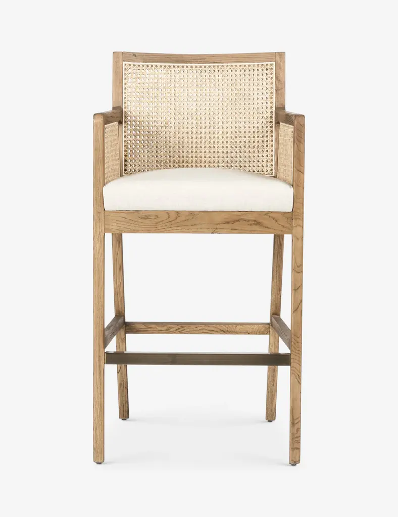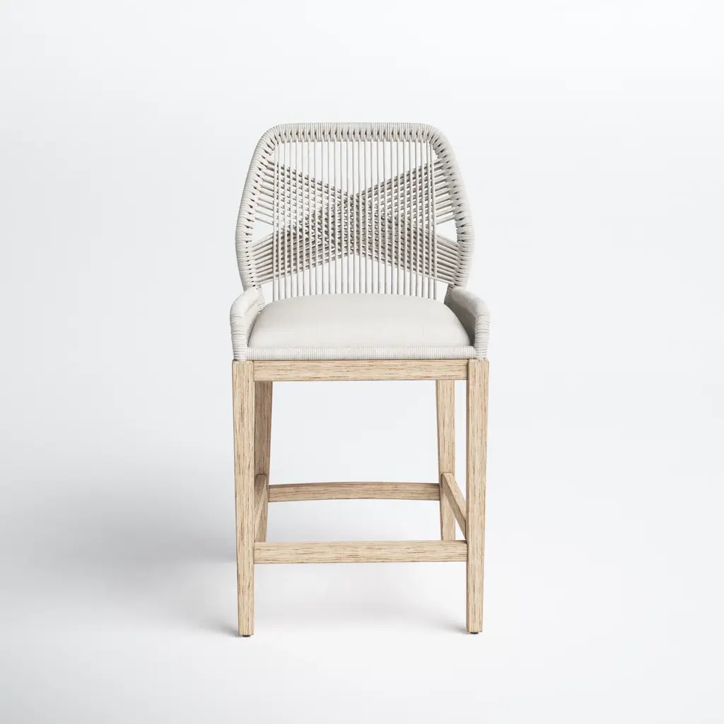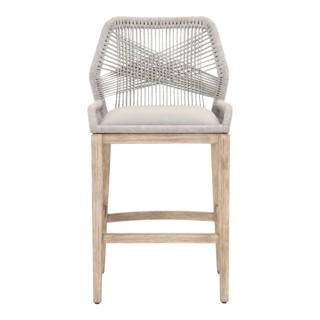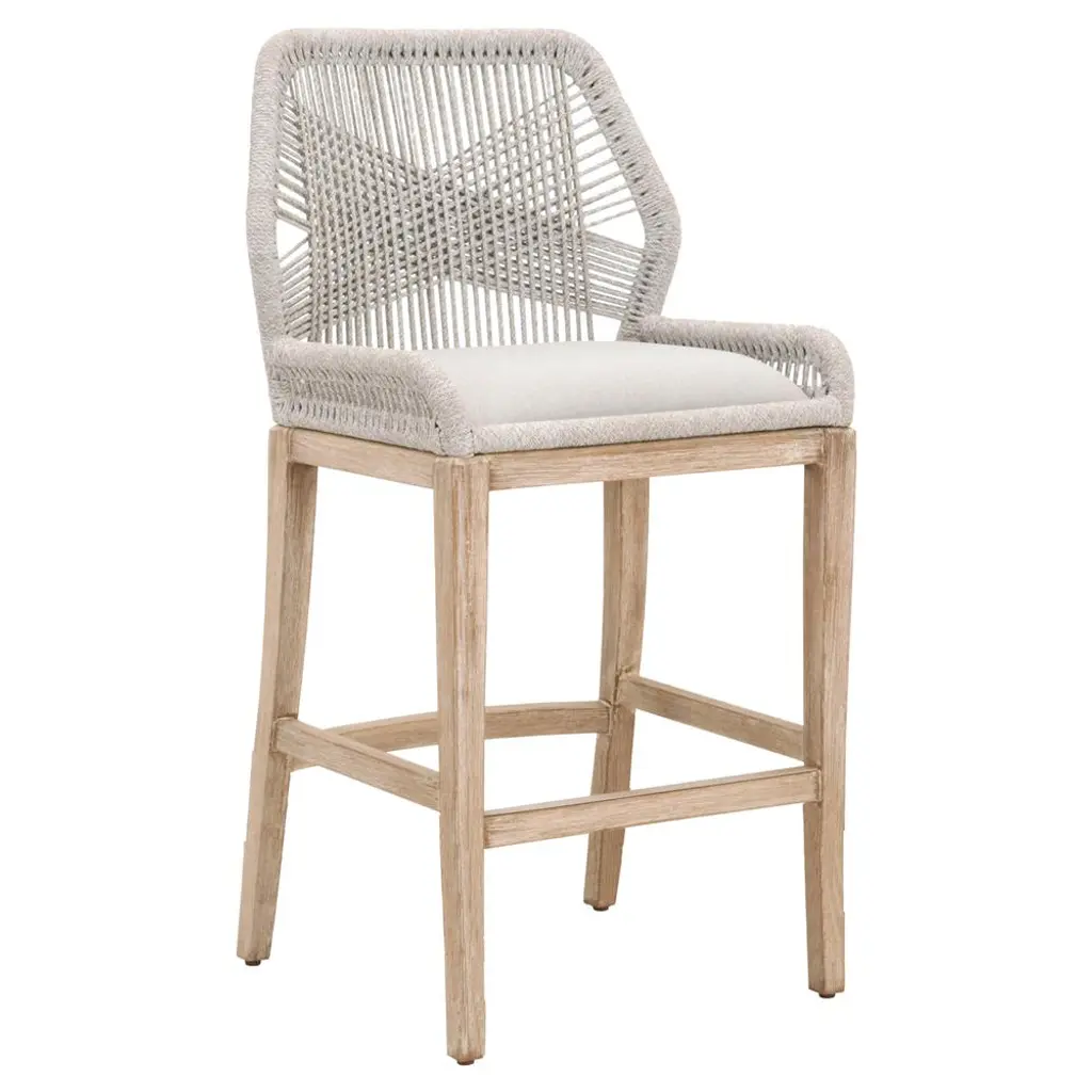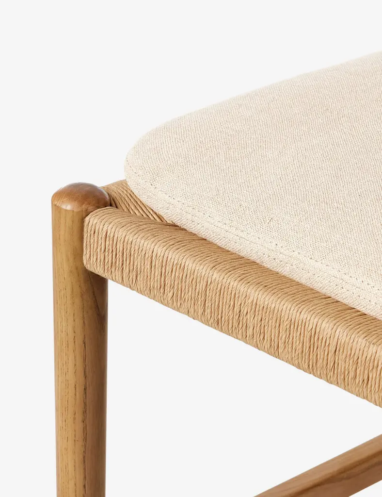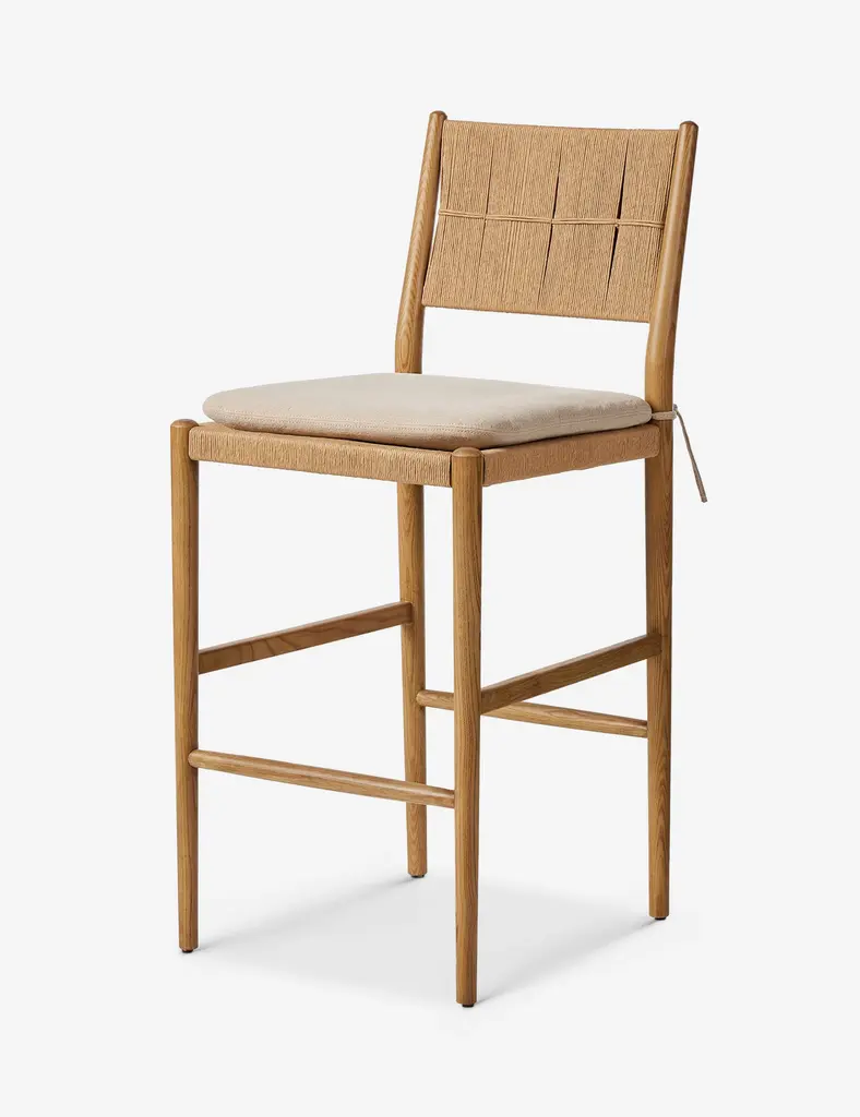 Four Hands brings their exceptional craftsmanship to a timeless collection rooted in Amber Lewis' perennial California style. Wrapped cording and a removable seat cushion team up to provide both exquisite style and impeccable comfort for a modern counter and bar stool. The stool is an armless silhouette with a natural wood frame, offering a fresh, coastal design influence to a casual dining space.